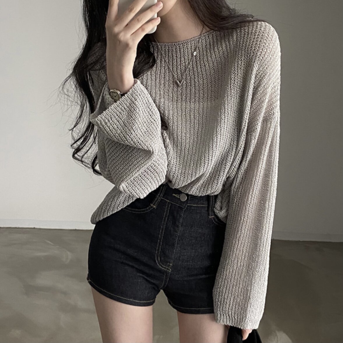 Женская свободная блузка больших размеров в корейском стиле, повседневная солнцезащитная блузка для женщин с летним толстым MM, утягивающий весенне-осенний вязаный внутренний топ