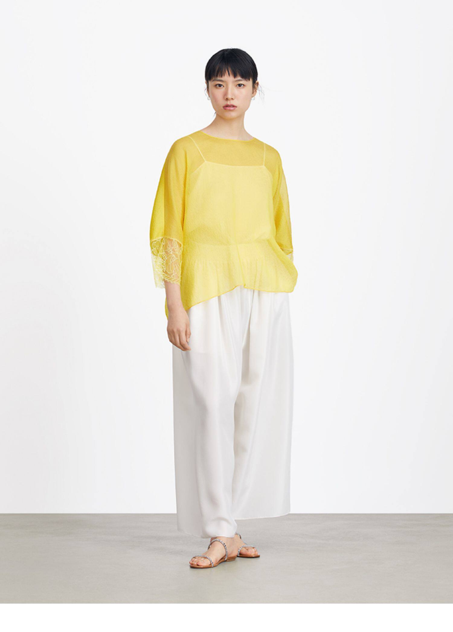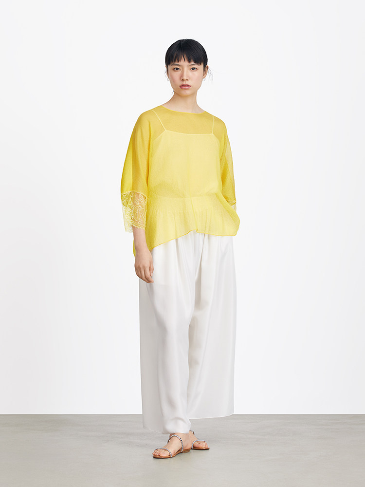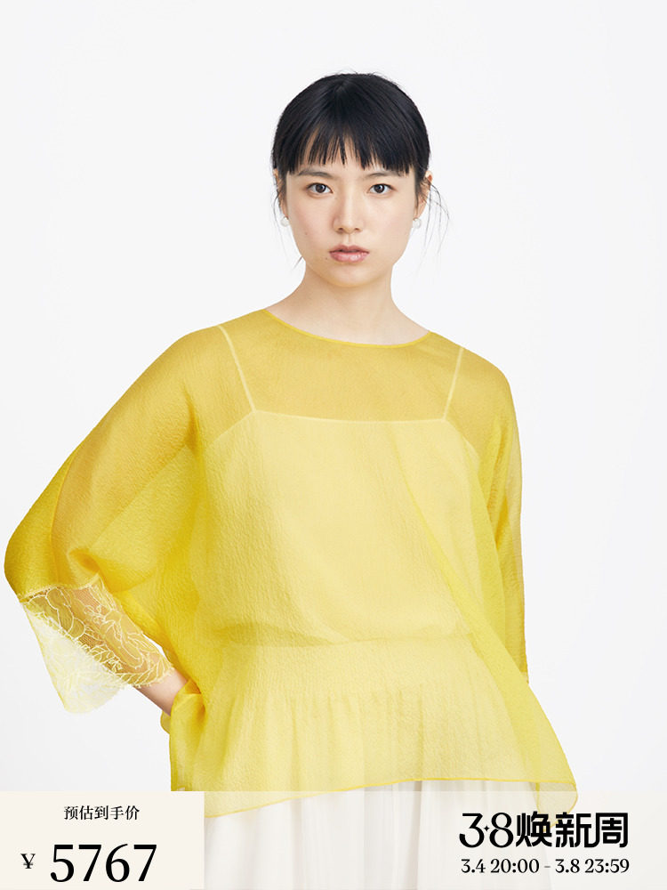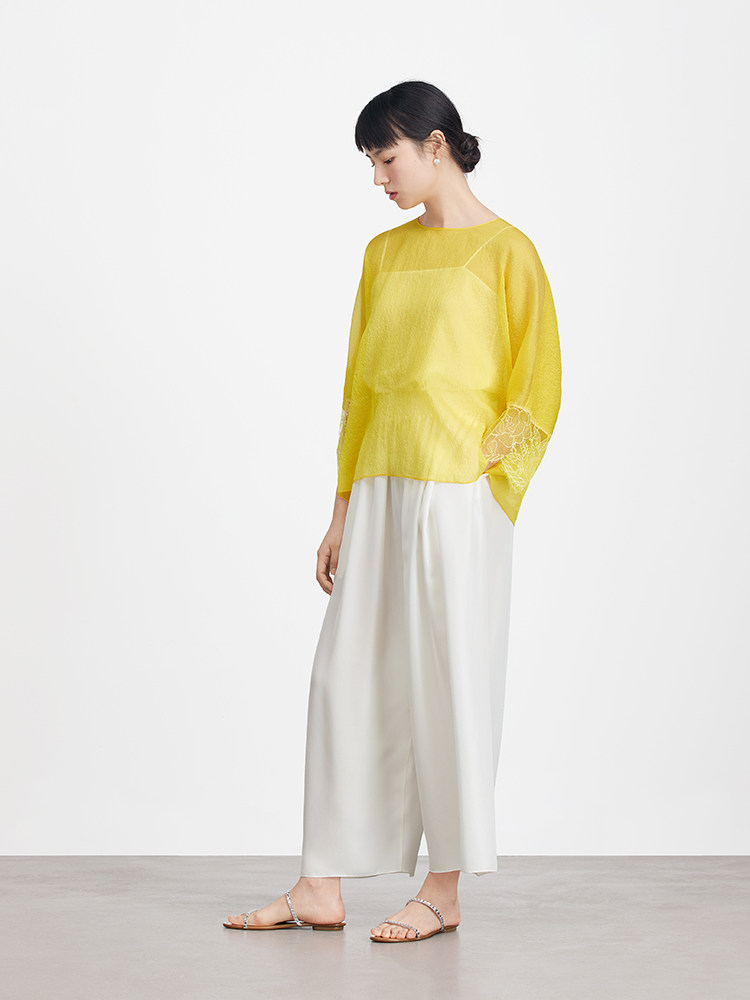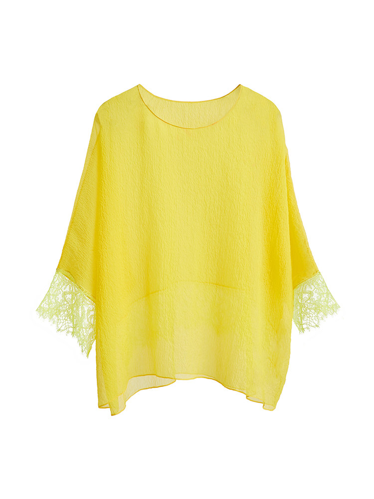Ms MIN Ярко -желтый шифоновый кружево свободный верх