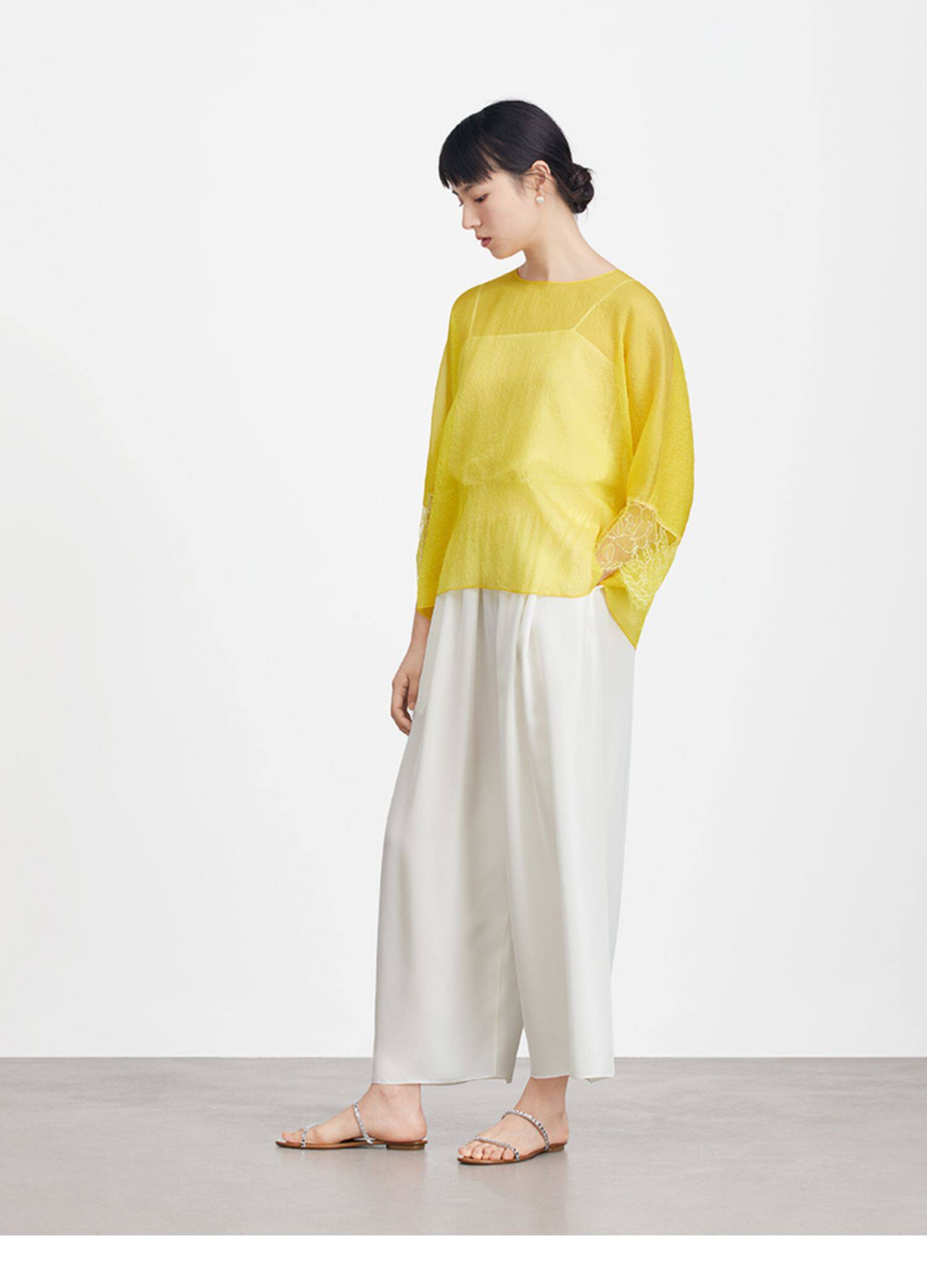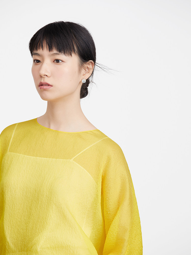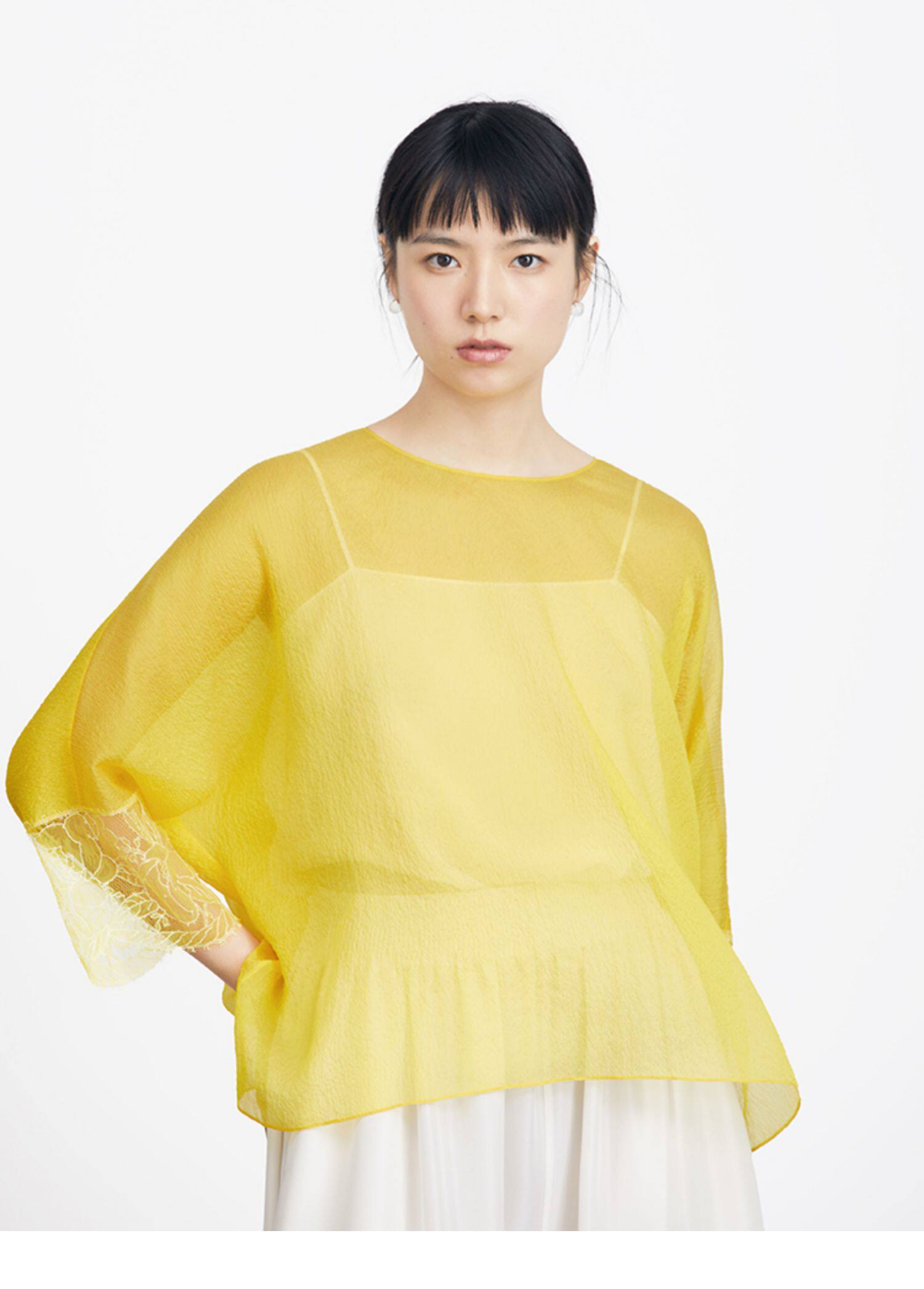 Ms MIN Ярко -желтый шифоновый кружево свободный верх