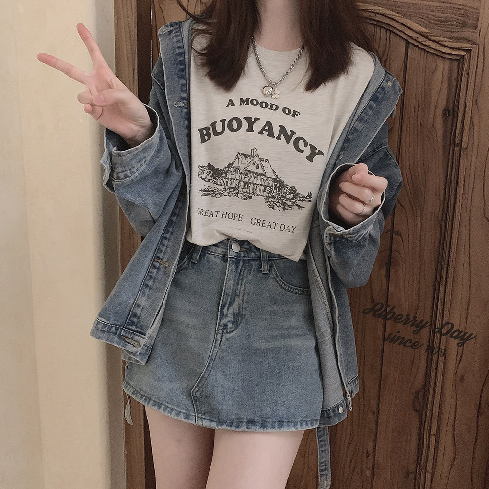 Футболка с коротким рукавом с круглым воротником, в американском стиле