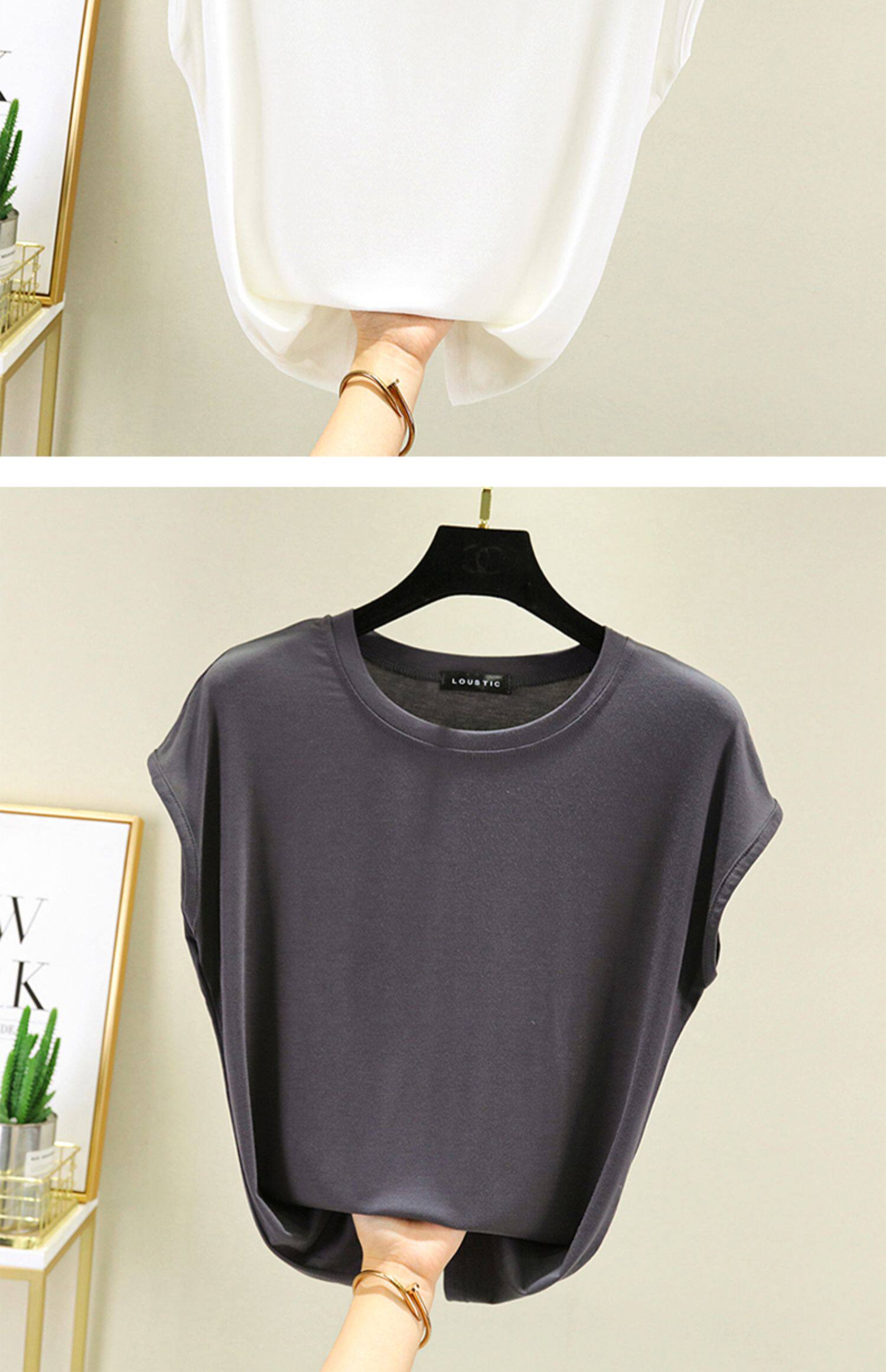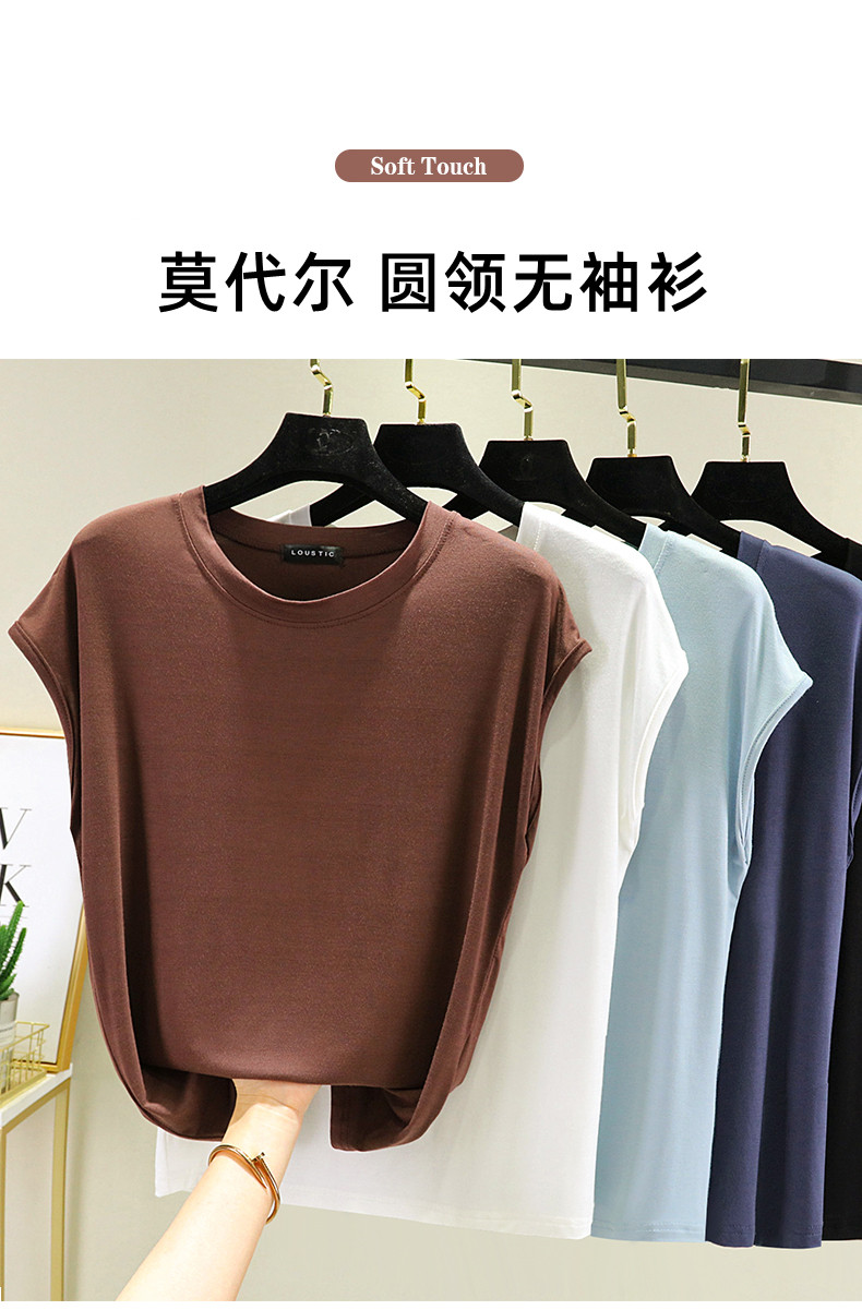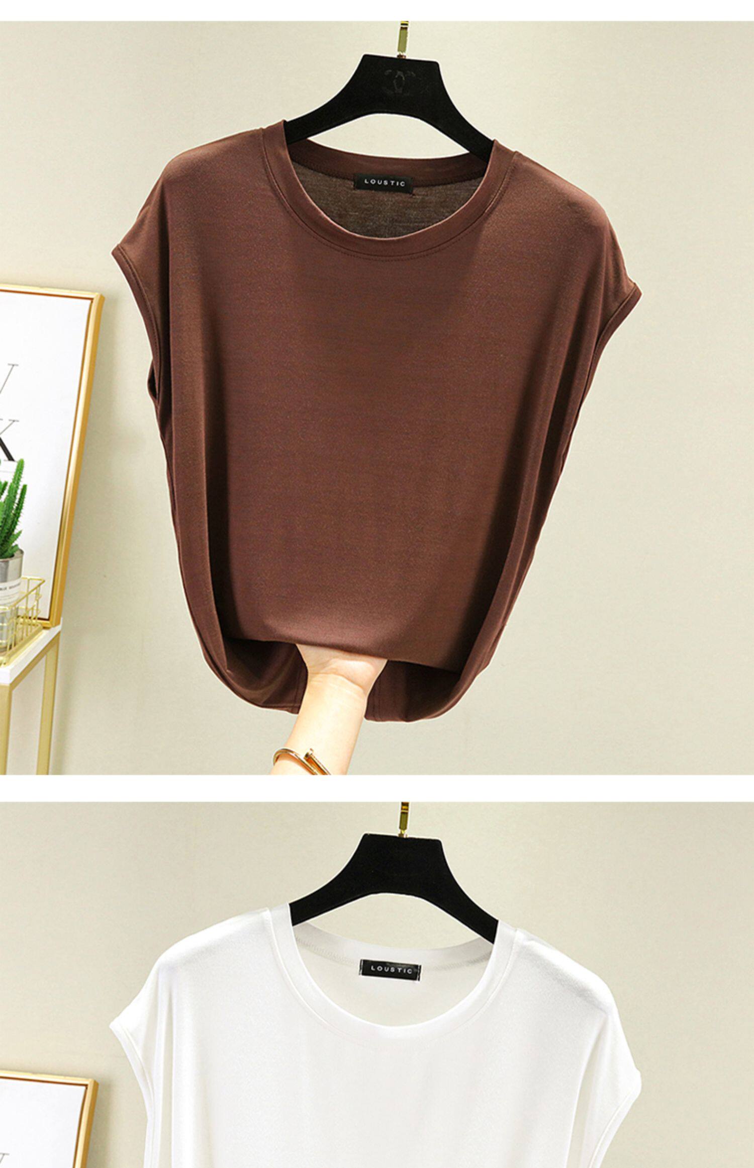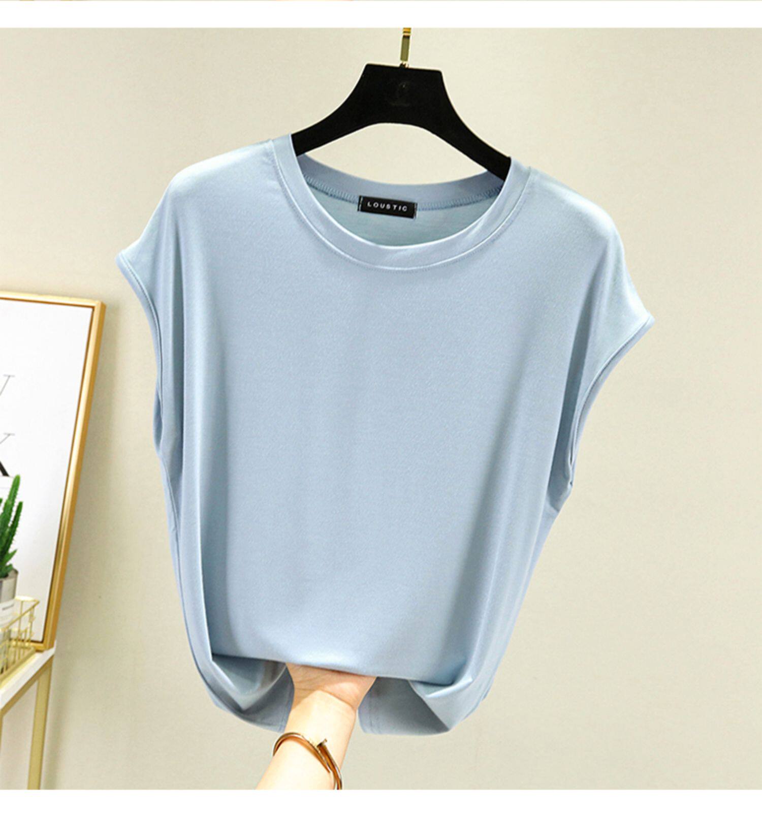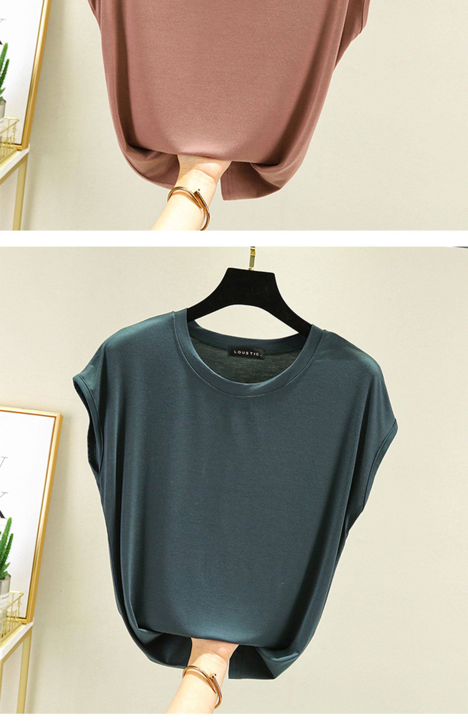 Летняя тонкая базовая однотонная футболка без рукавов с круглым воротником, большой размер