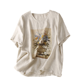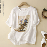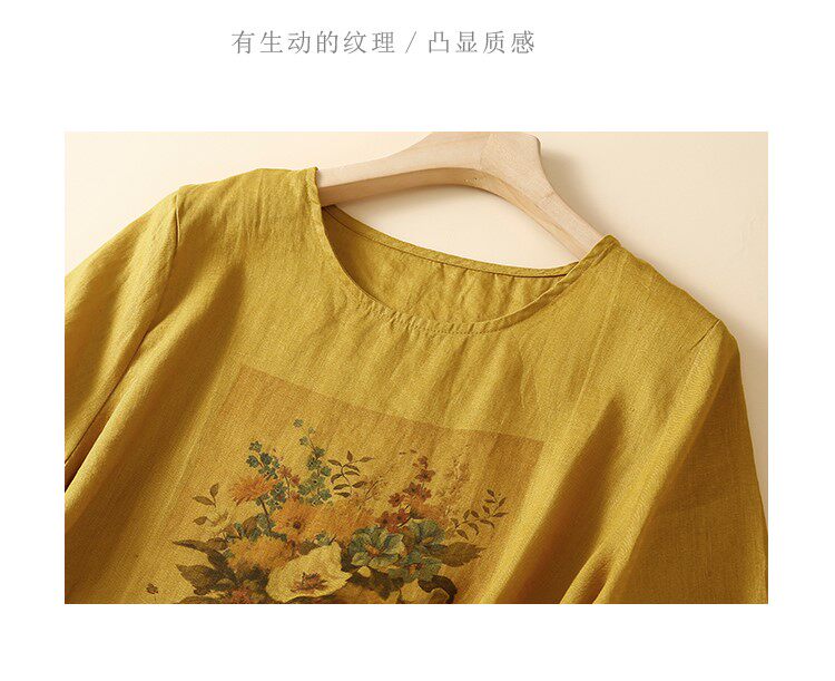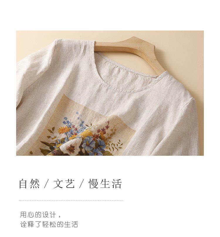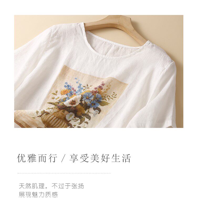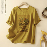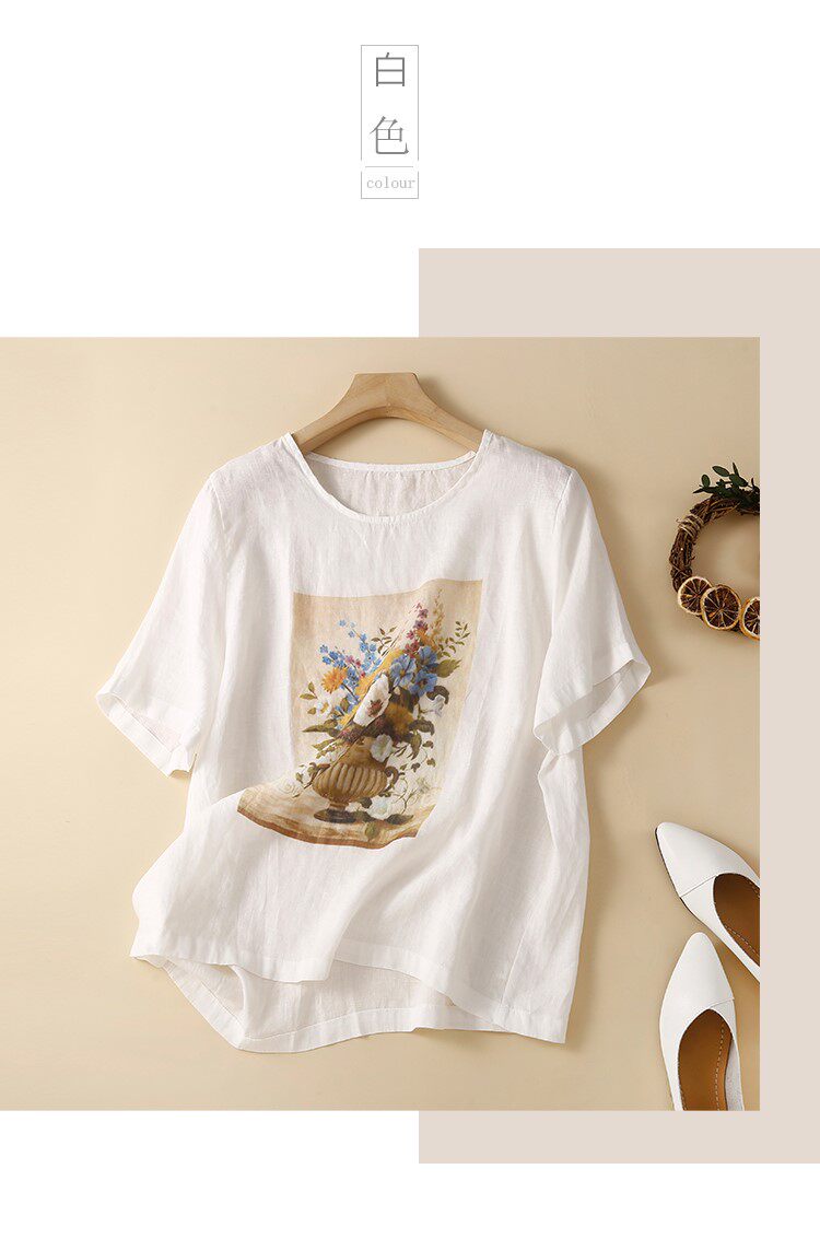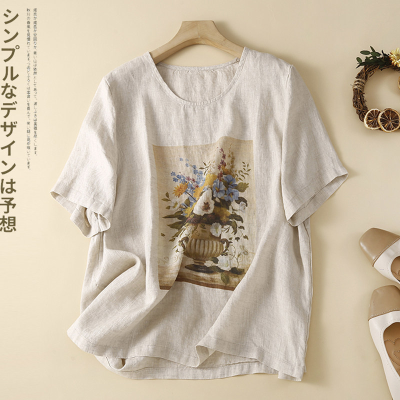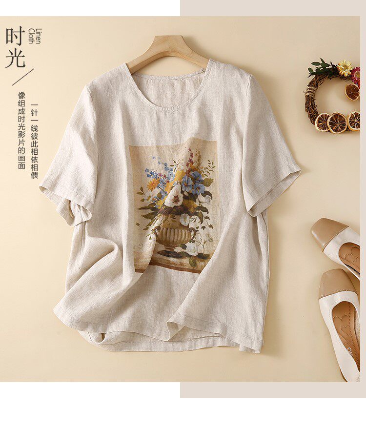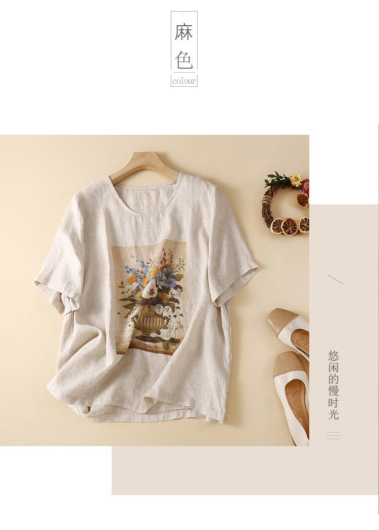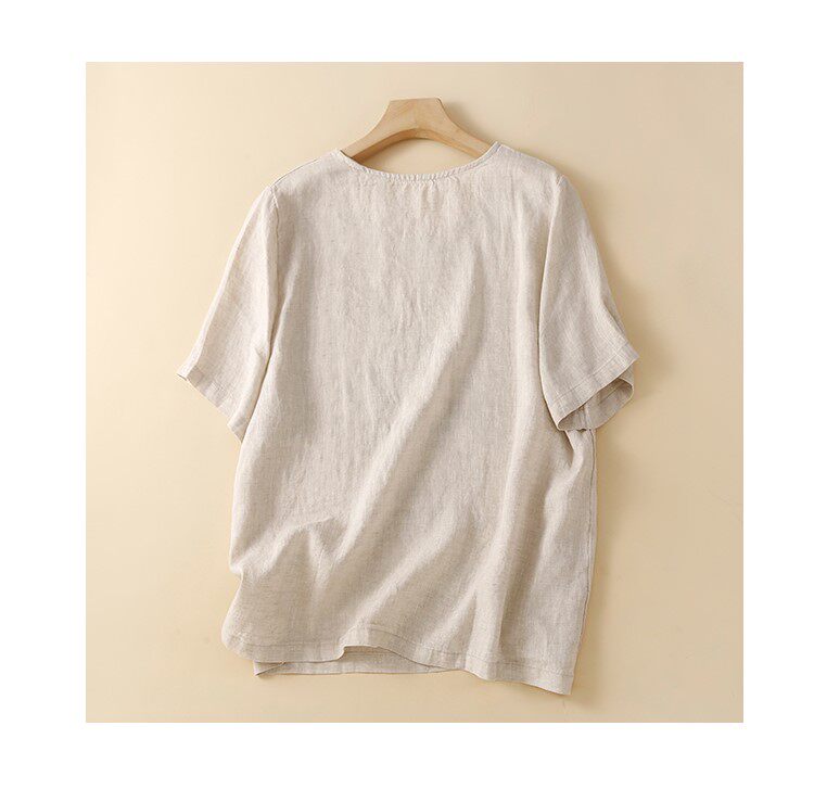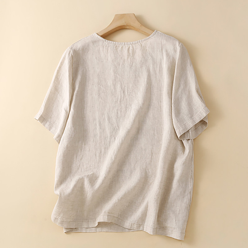 Летняя футболка с коротким рукавом для матери, из хлопка и льна, коллекция 2023, по фигуре