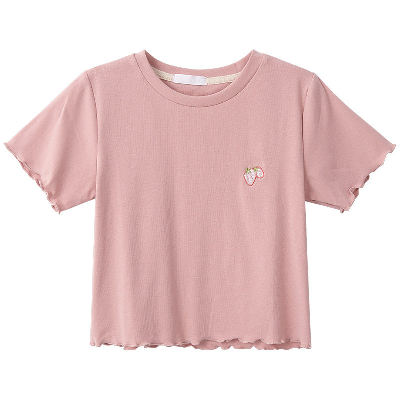 Летняя милая приталенная брендовая футболка с коротким рукавом, с вышивкой