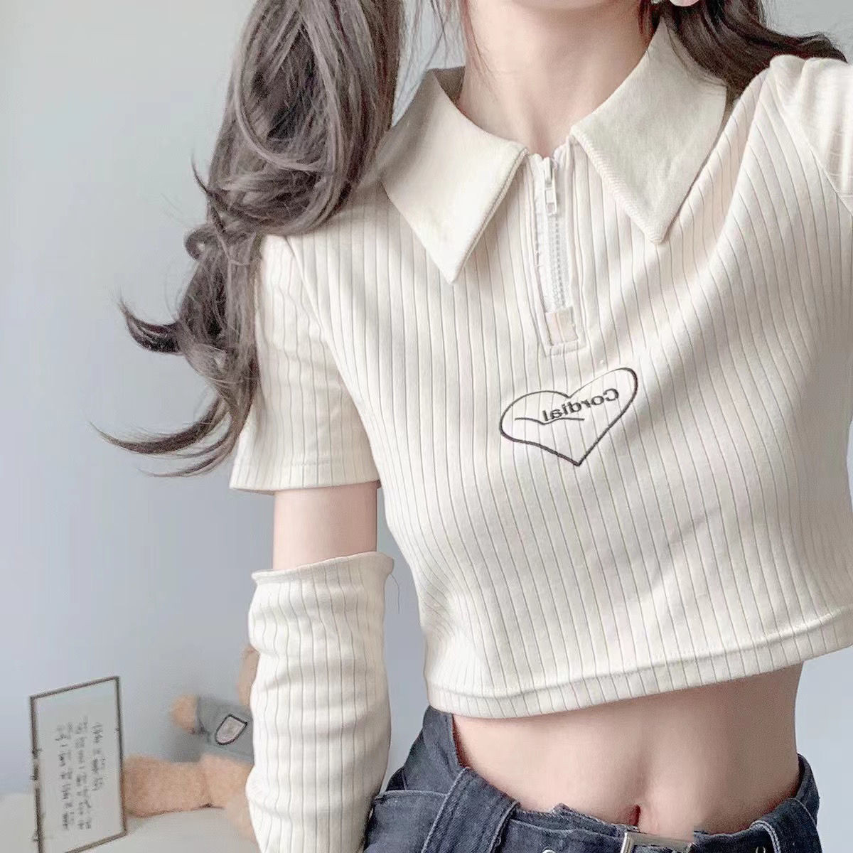 Короткая футболка polo, футболка с коротким рукавом для школьников и студентов, французский стиль, облегающий крой