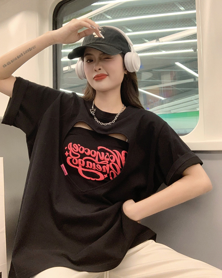 Летняя футболка с коротким рукавом, бюстгальтер-топ, комплект, большой размер, короткий рукав