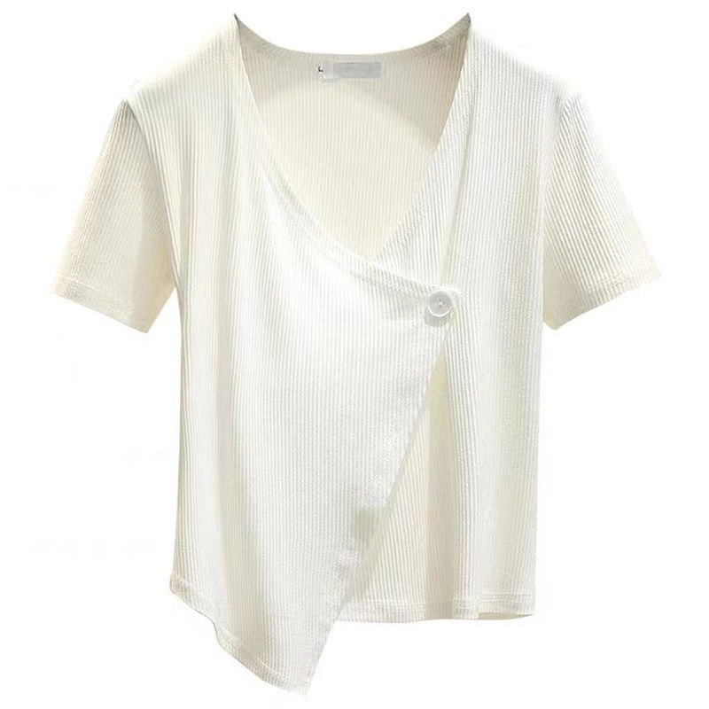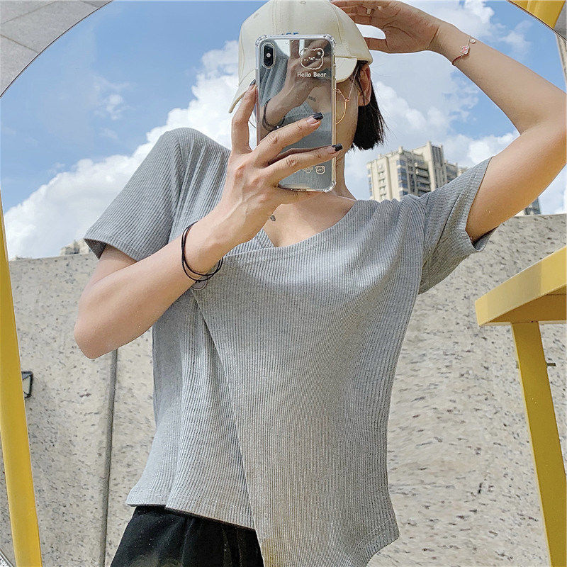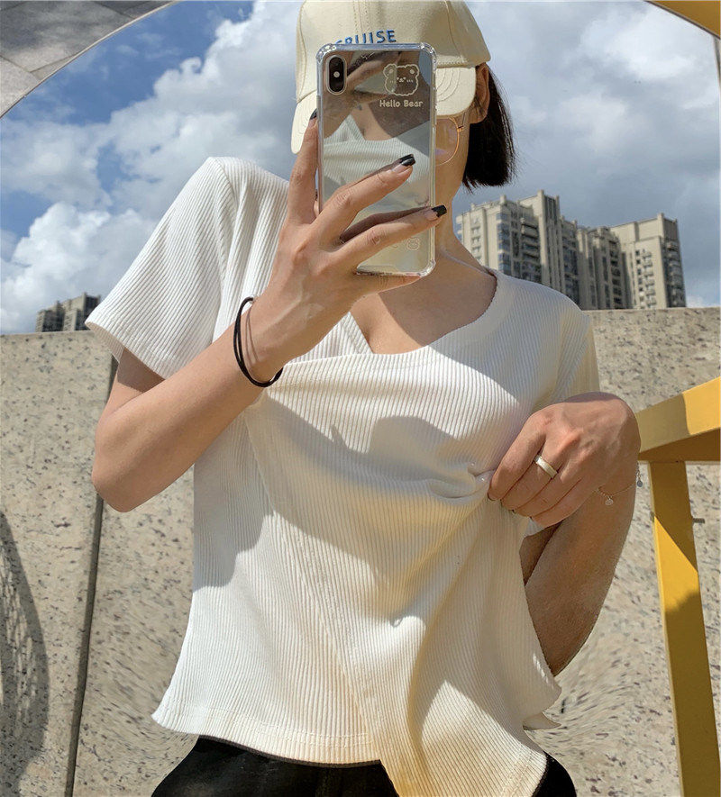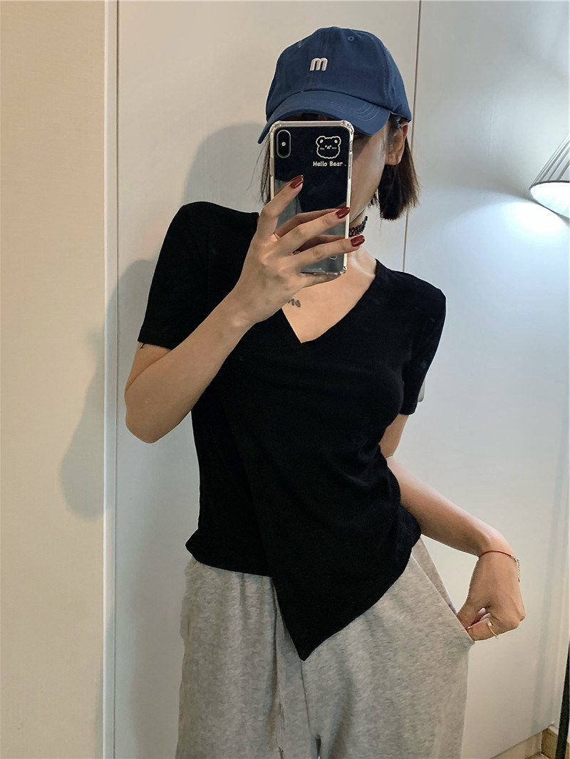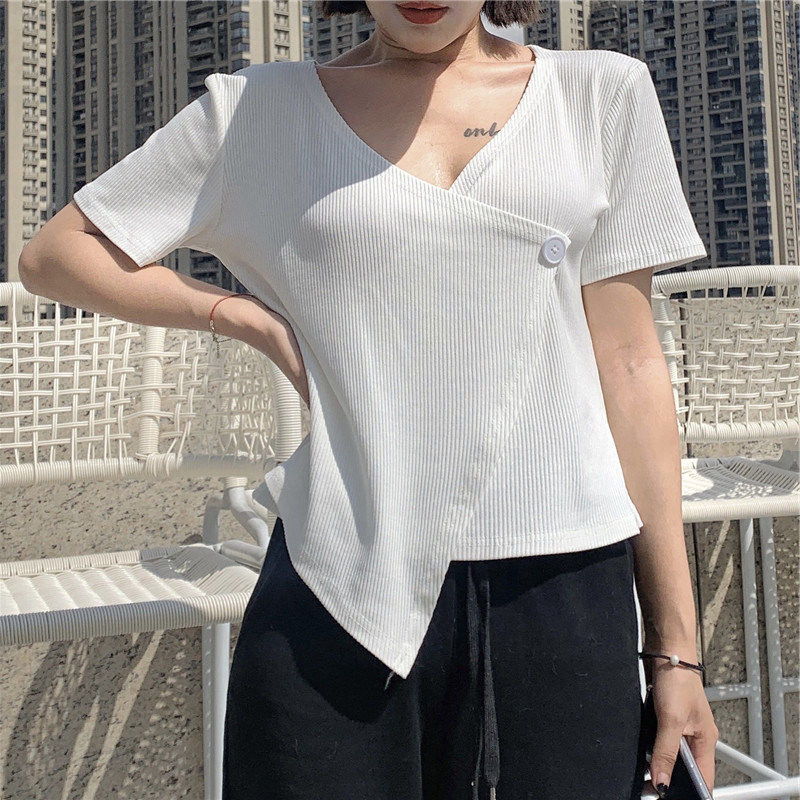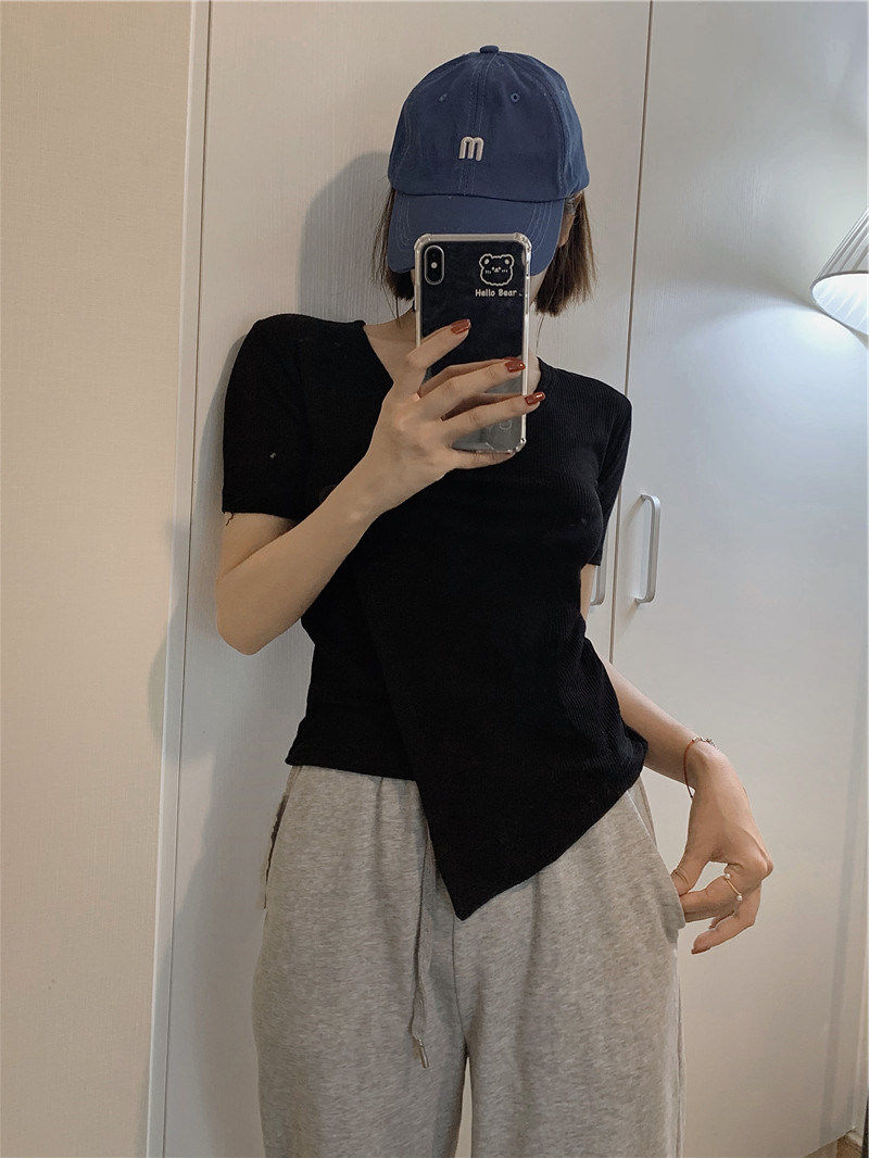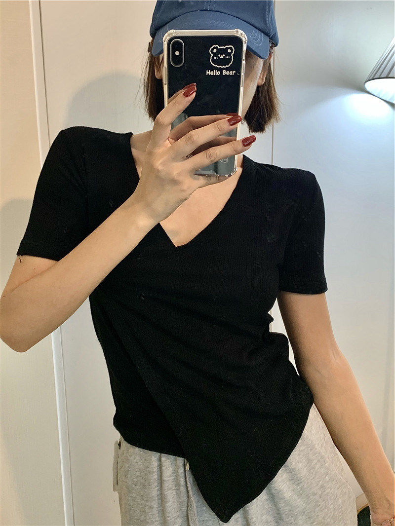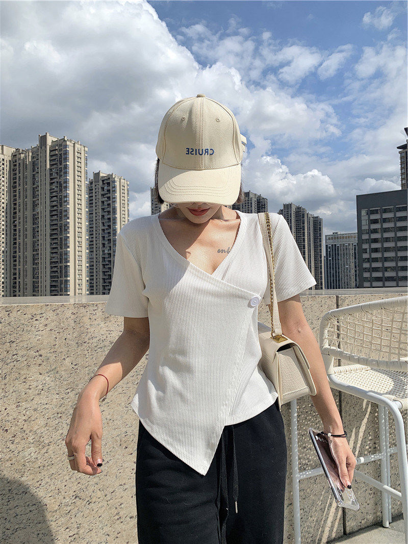 Летняя дизайнерская короткая футболка, короткий рукав, коллекция 2023, тренд сезона, в западном стиле