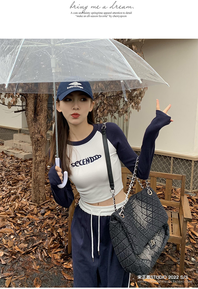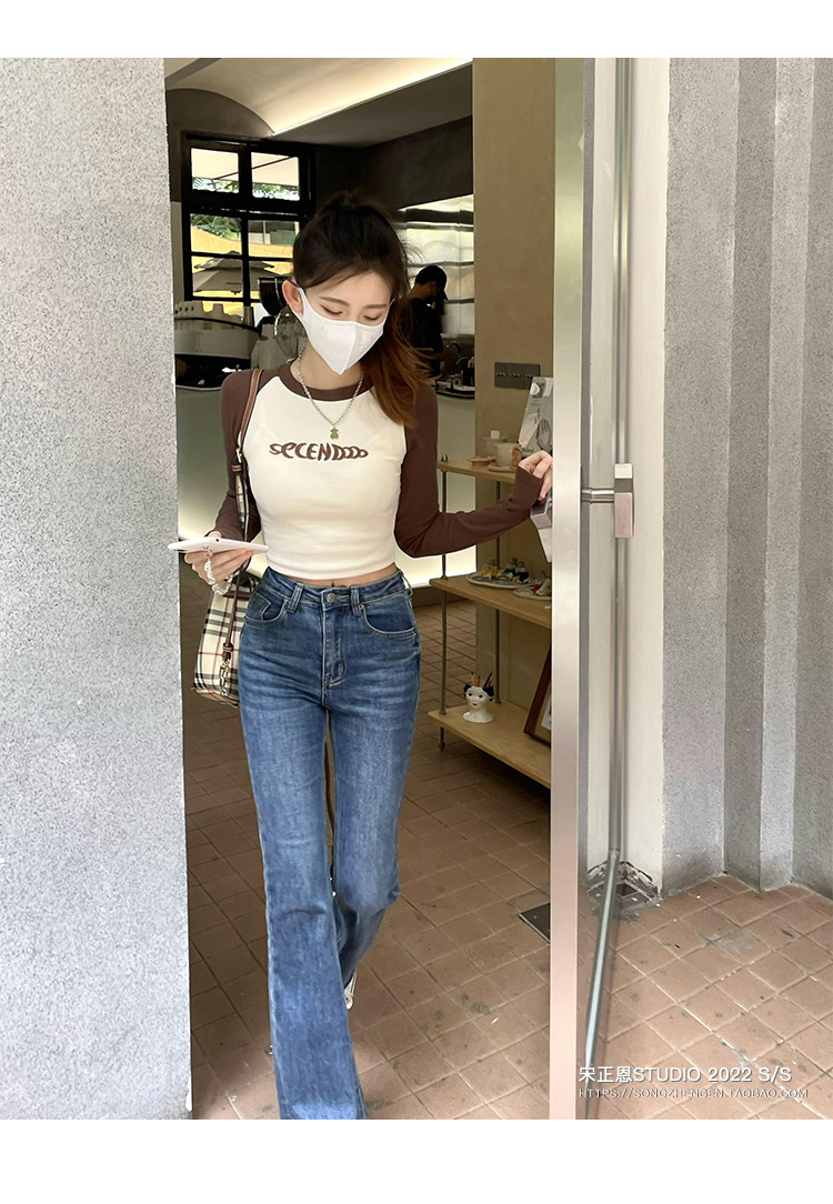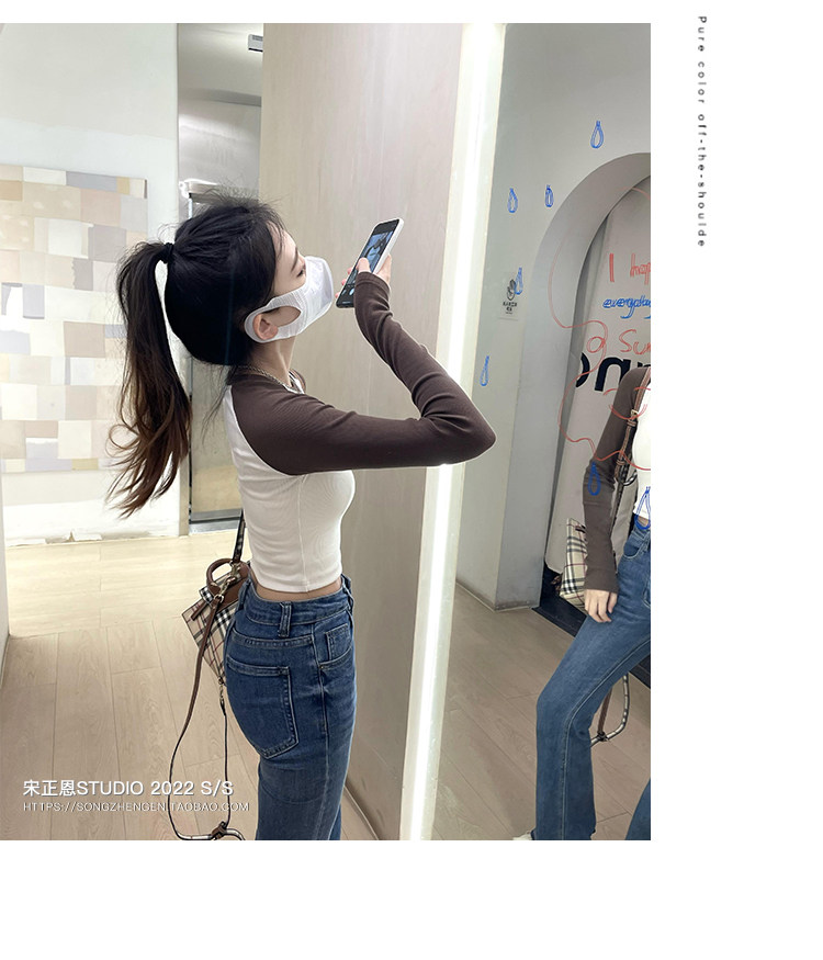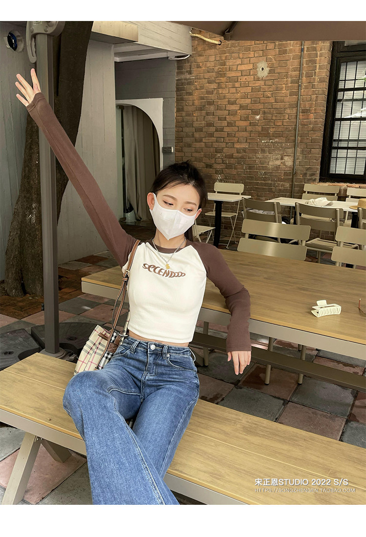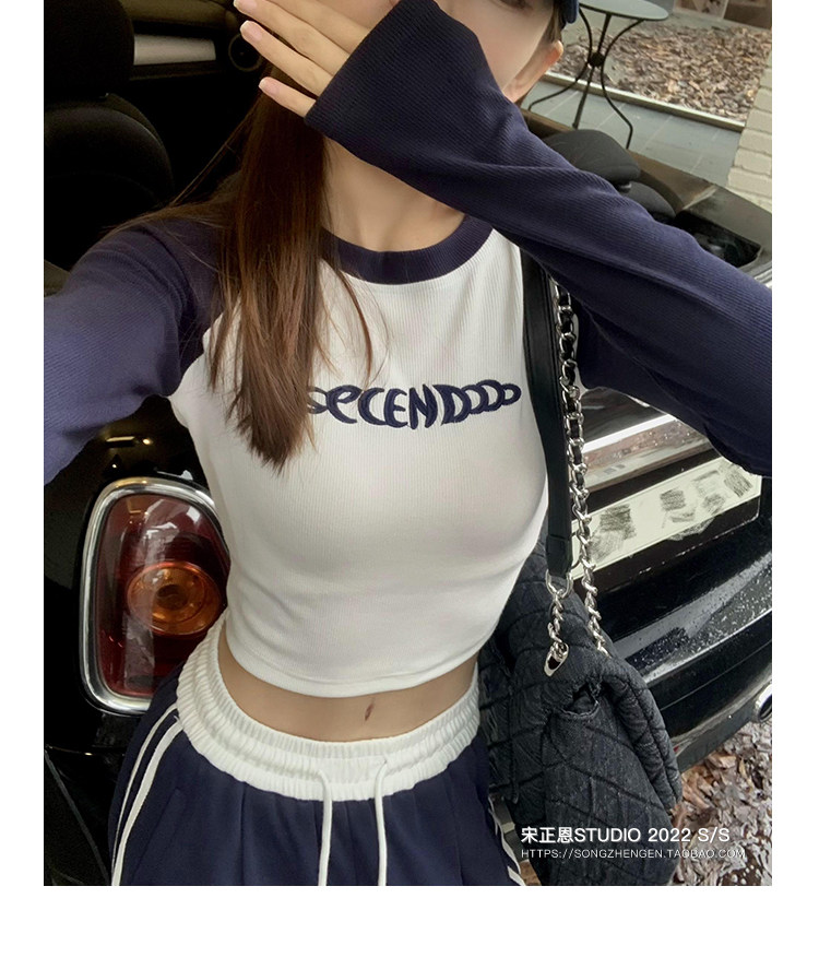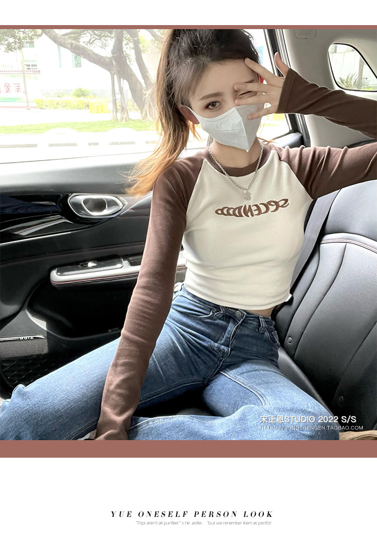 Короткая футболка, осенний приятный телу лонгслив, облегающий крой