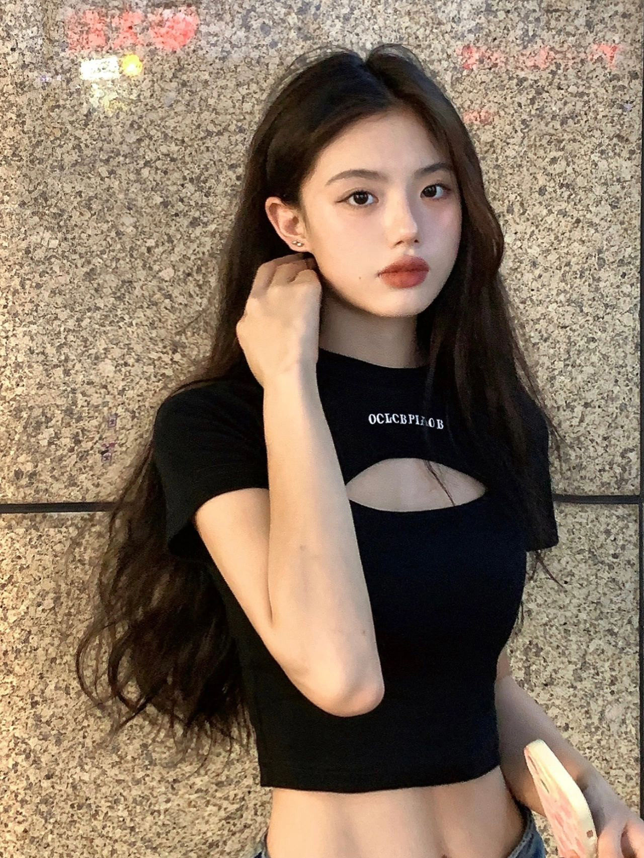 Сексуальная приталенная короткая футболка с коротким рукавом