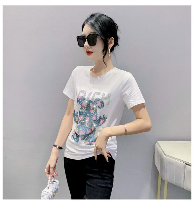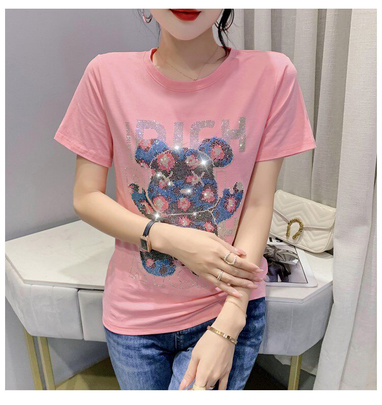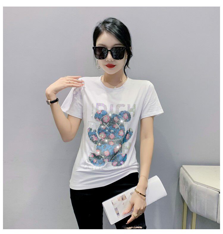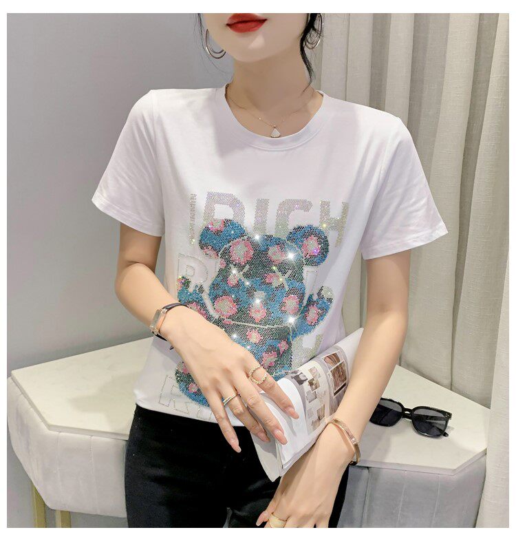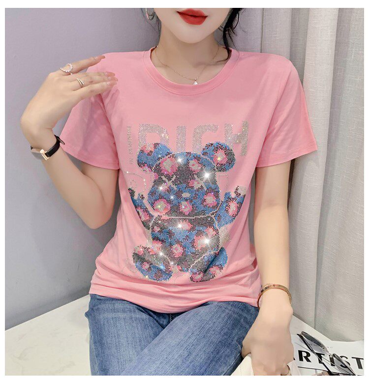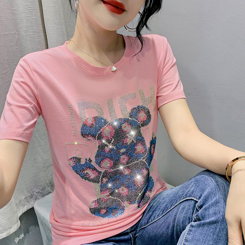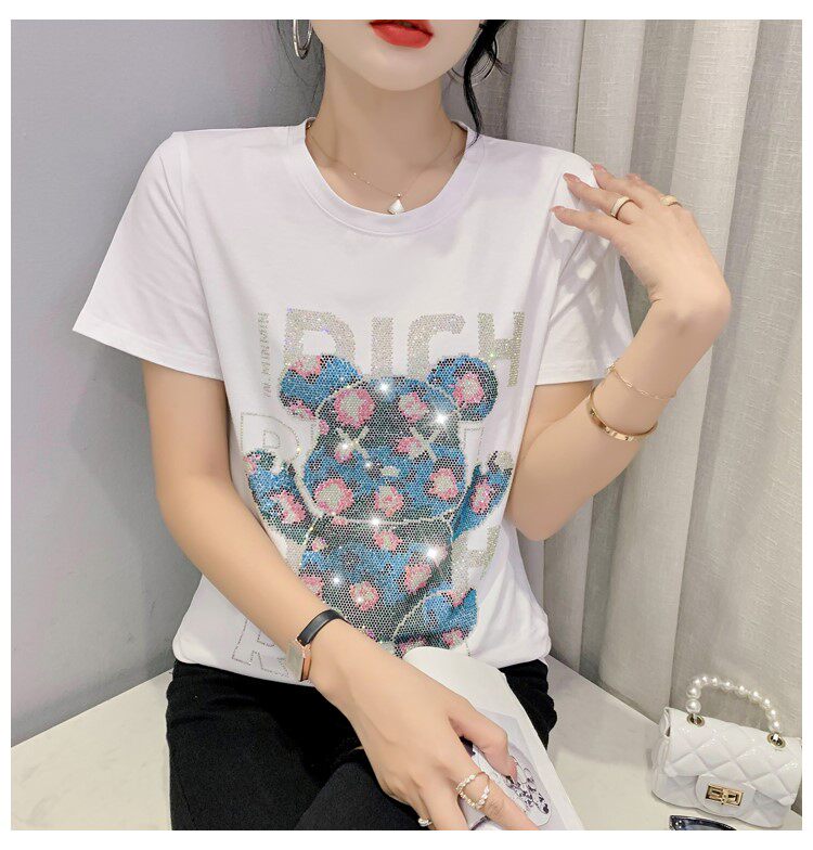 Летняя модная приталенная футболка с коротким рукавом с круглым воротником, 2024 года, с медвежатами