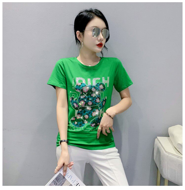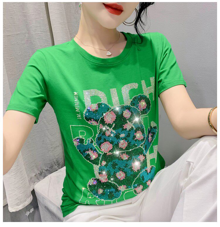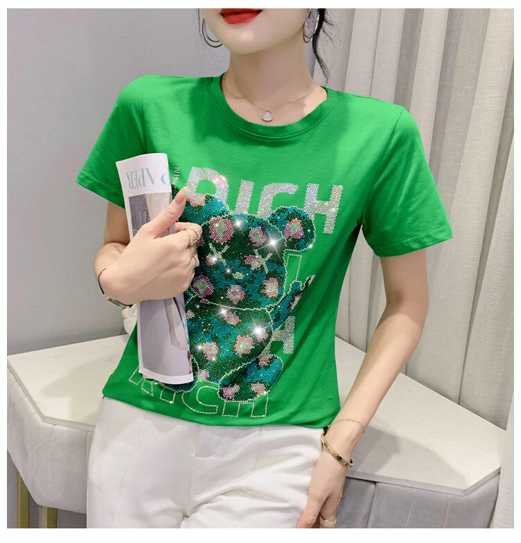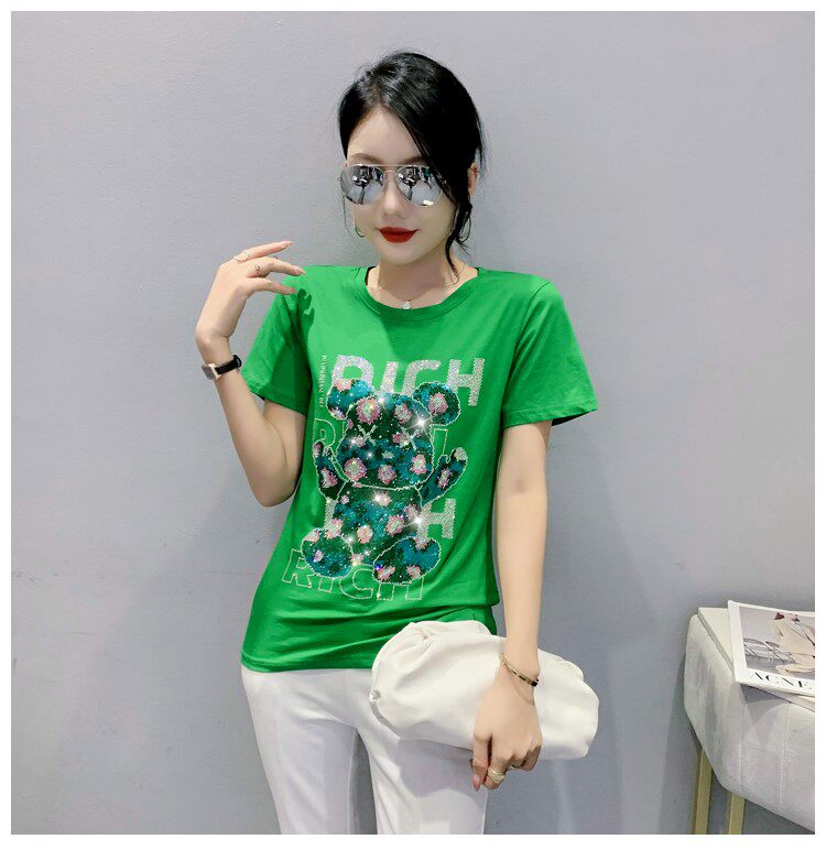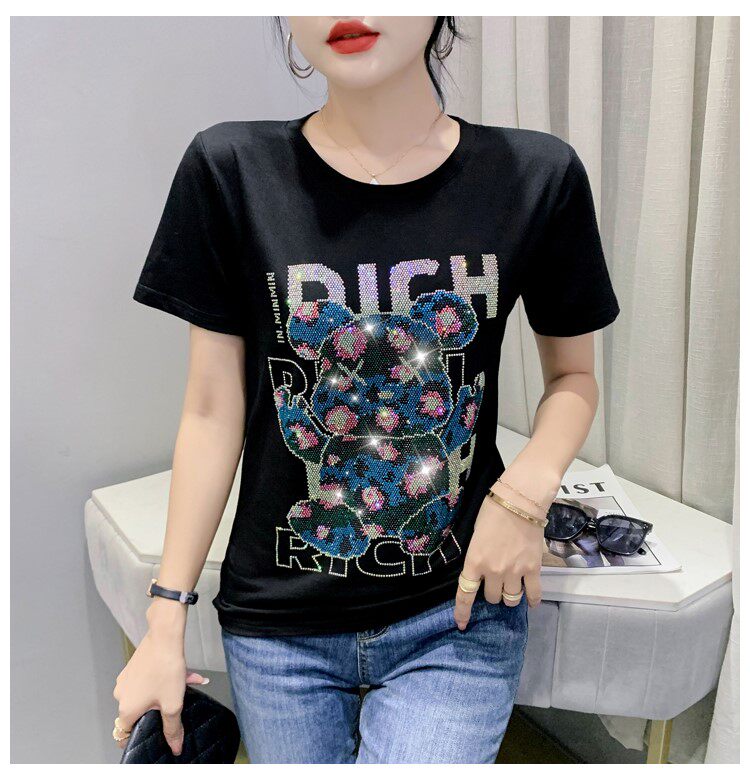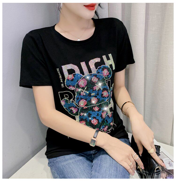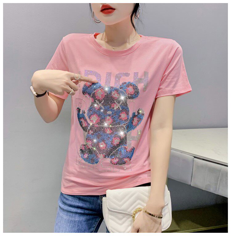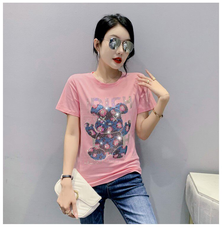Летняя модная приталенная футболка с коротким рукавом с круглым воротником, 2024 года, с медвежатами