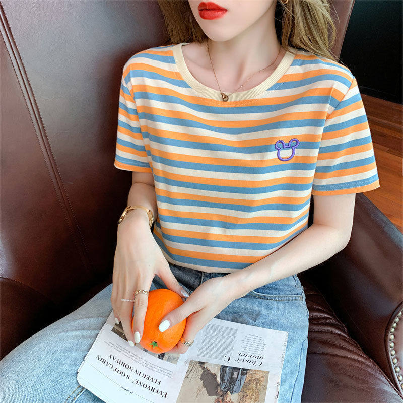 Летняя брендовая футболка с круглым воротником, с вышивкой, в корейском стиле, оверсайз