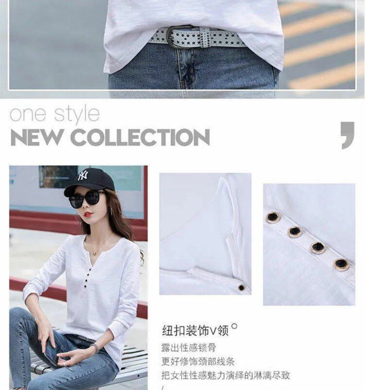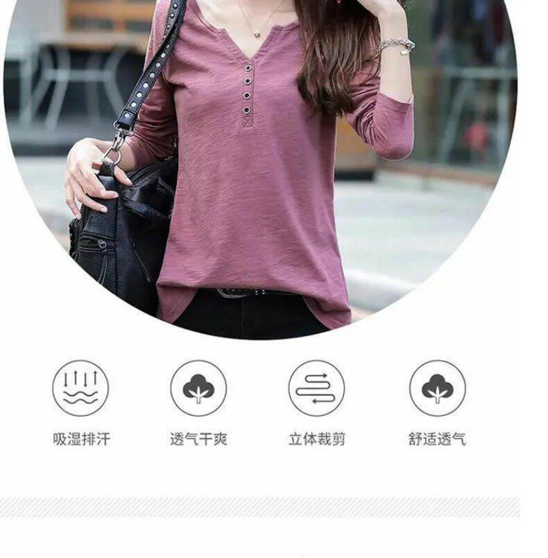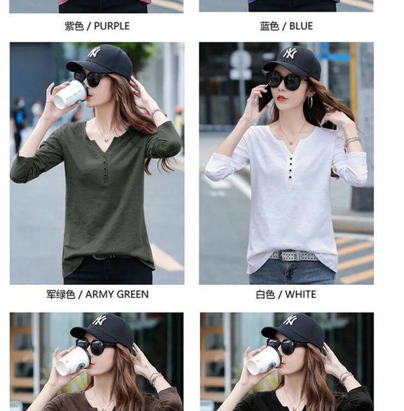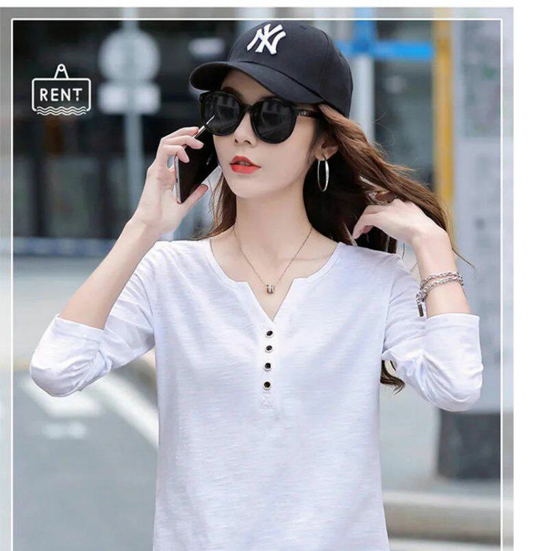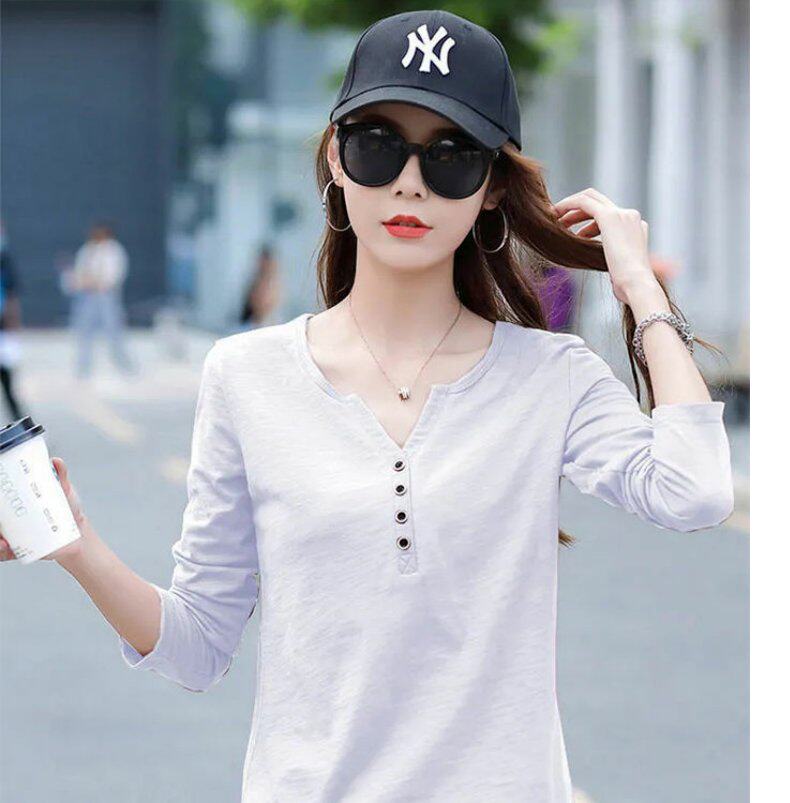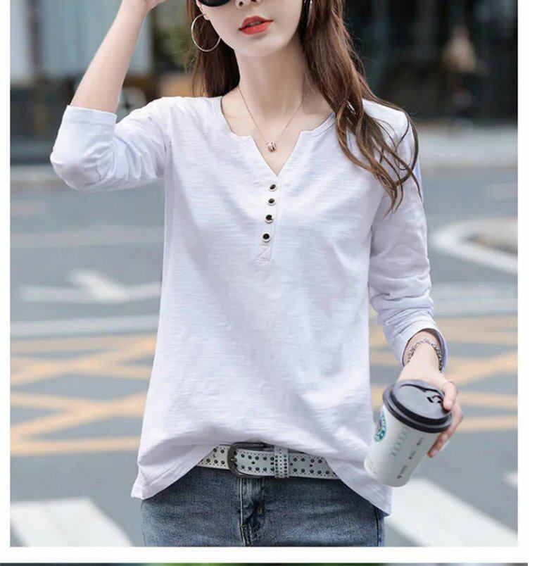 Весенний хлопковый осенний лонгслив, V-образный вырез, коллекция 2023, оверсайз