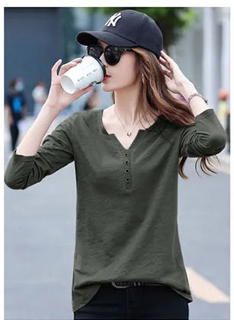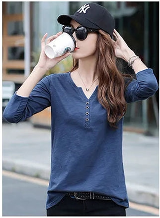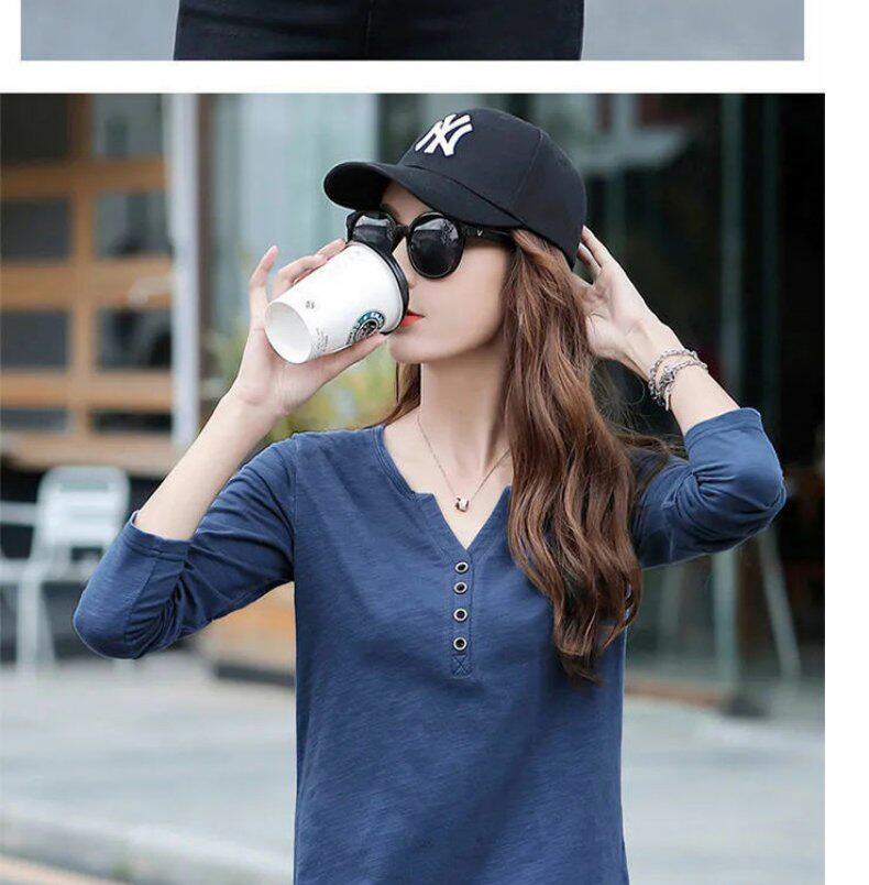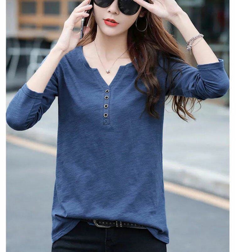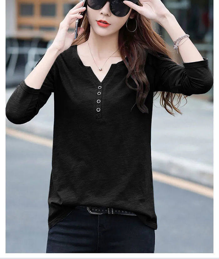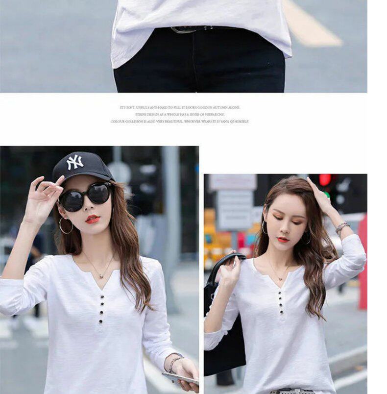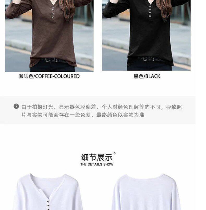 Весенний хлопковый осенний лонгслив, V-образный вырез, коллекция 2023, оверсайз