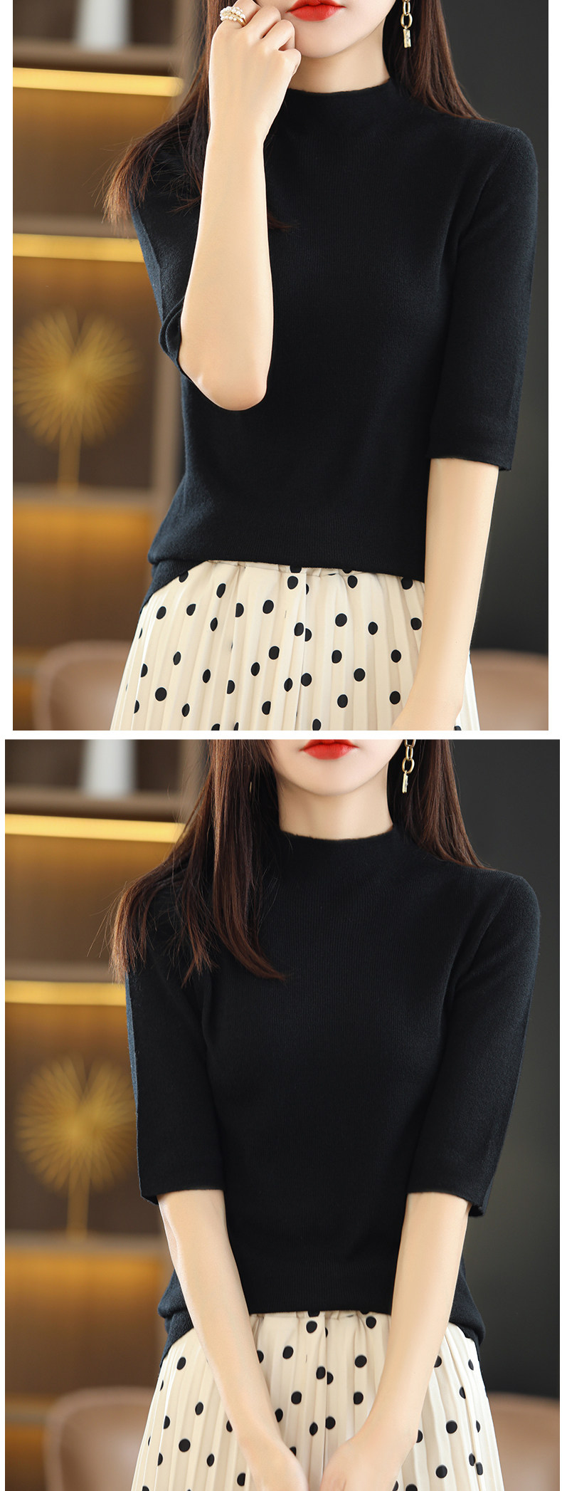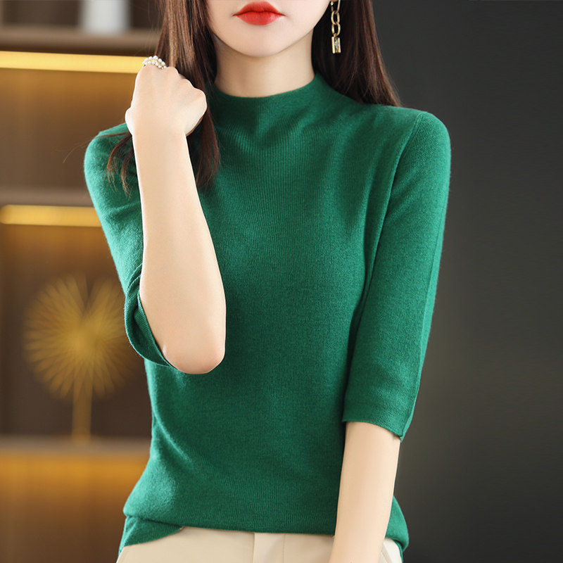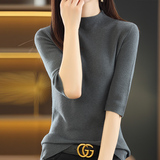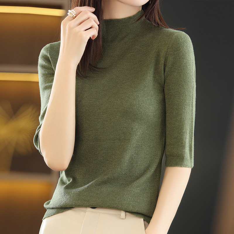 Тонкий трикотажный свитер, летняя приталенная базовая приятная телу футболка, высокий воротник