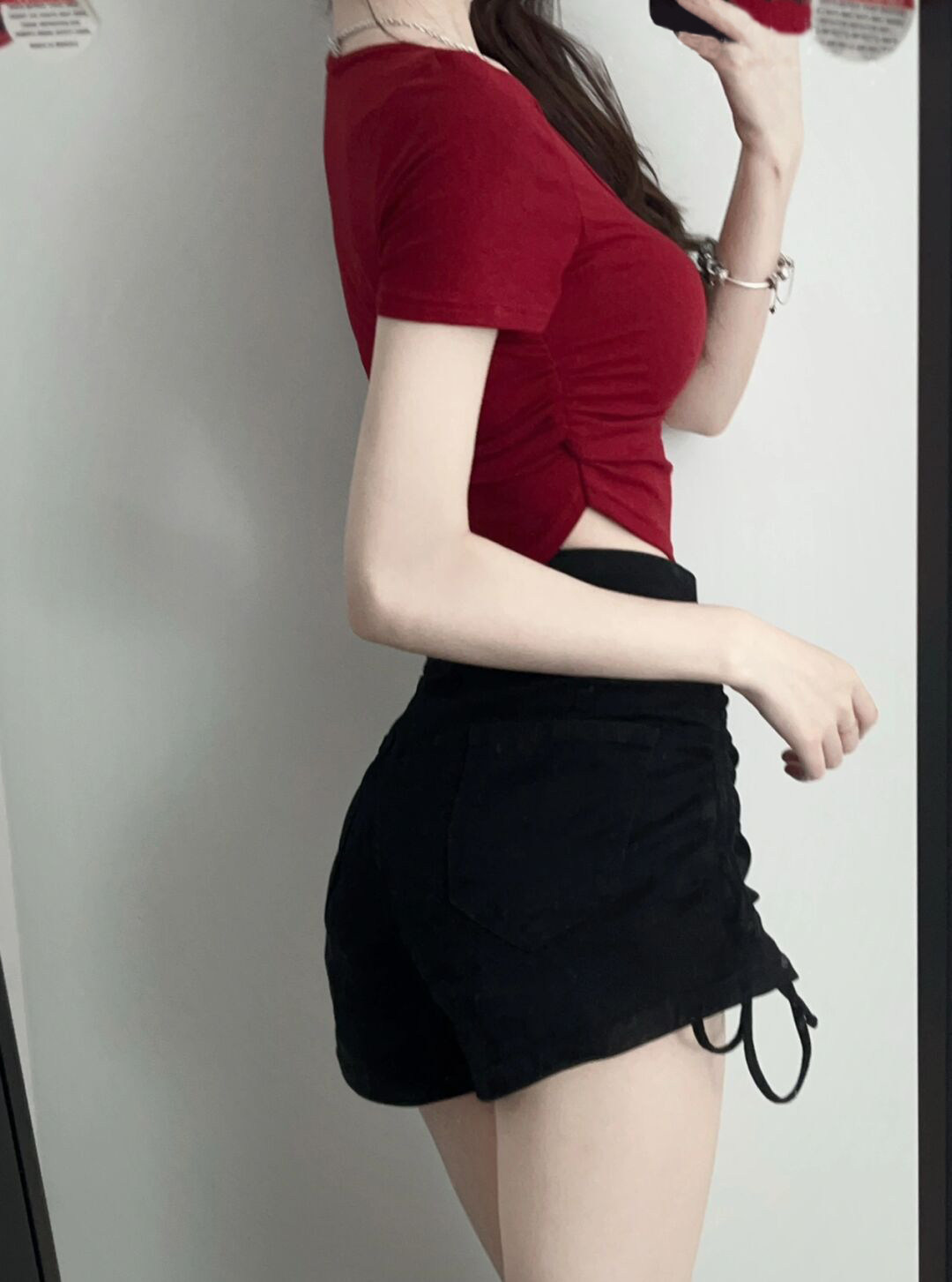 Красная сексуальная приталенная короткая футболка с коротким рукавом