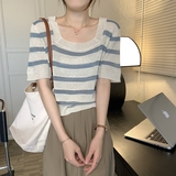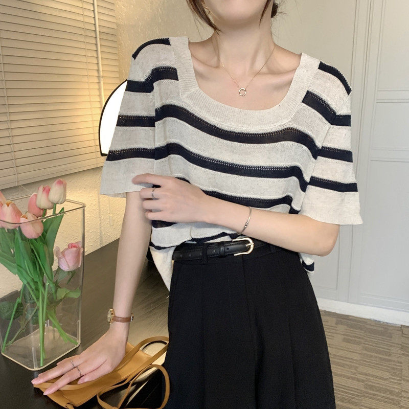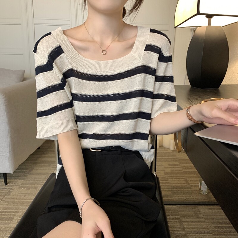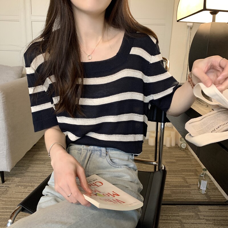 Tide, трикотажный свитер, летняя футболка с коротким рукавом, квадратный вырез, свободный крой