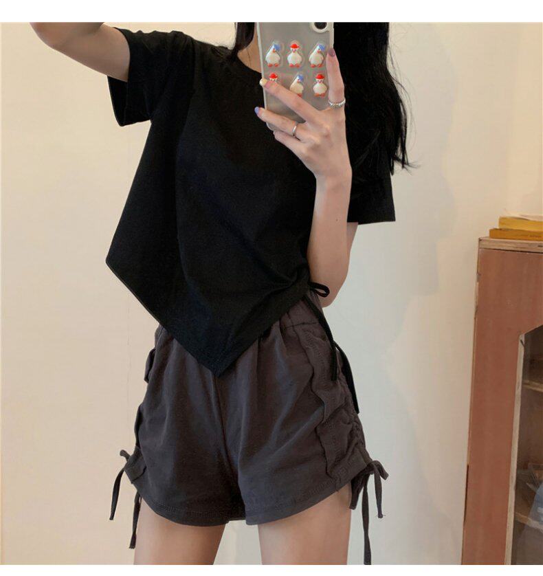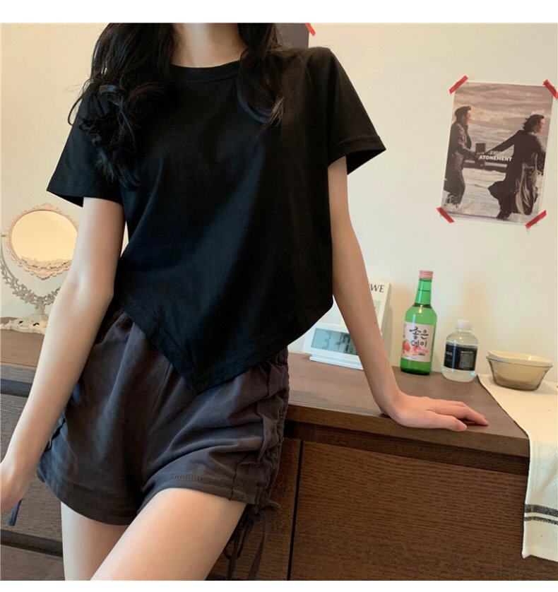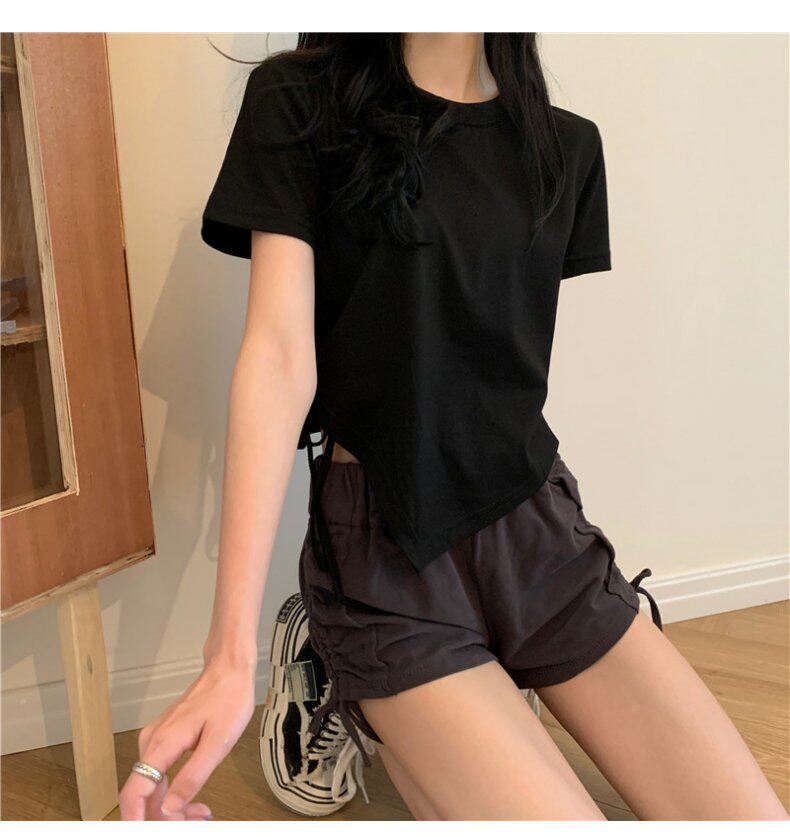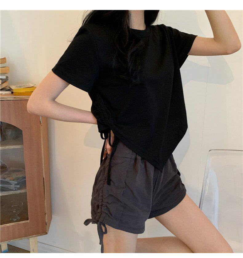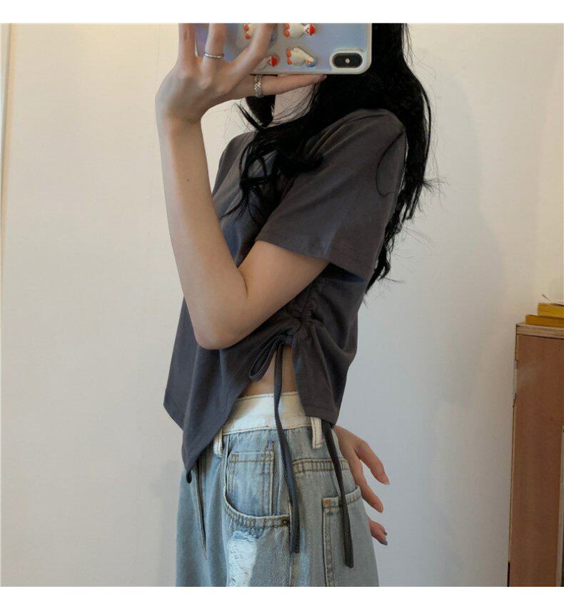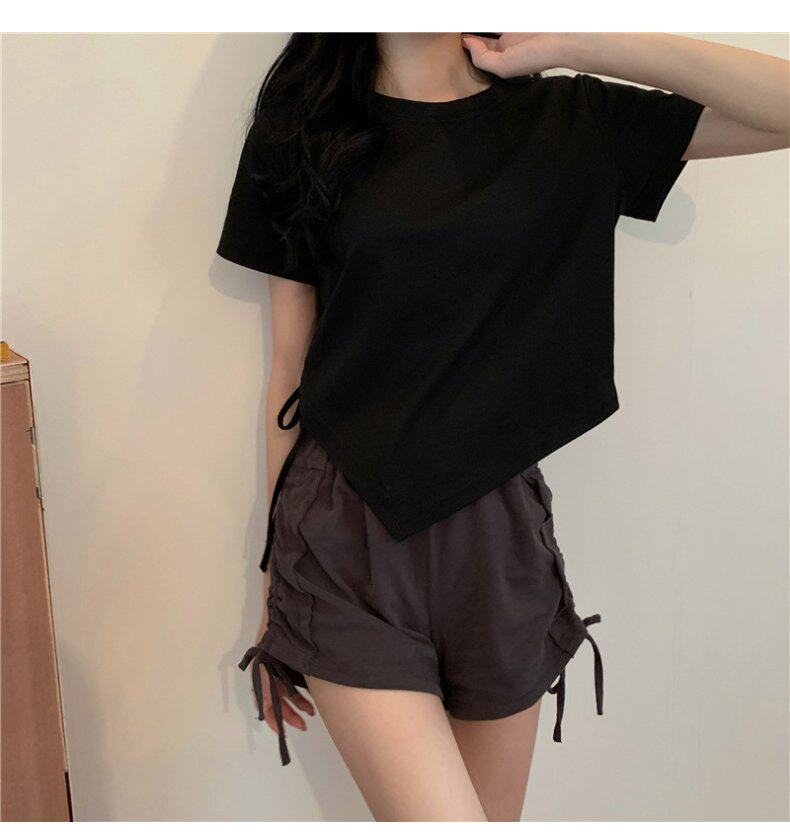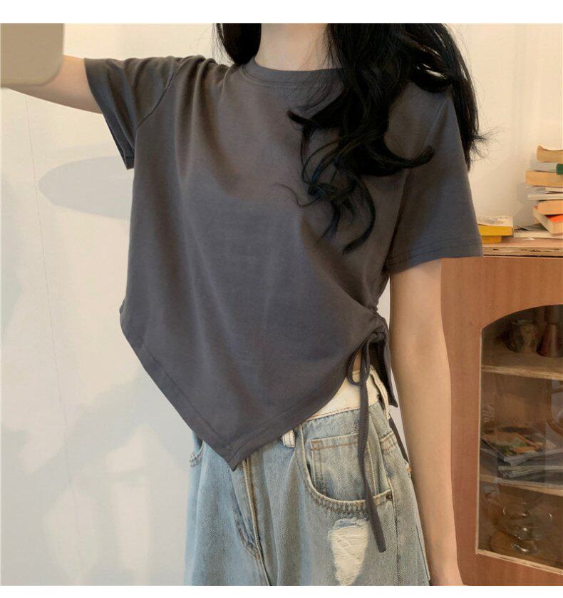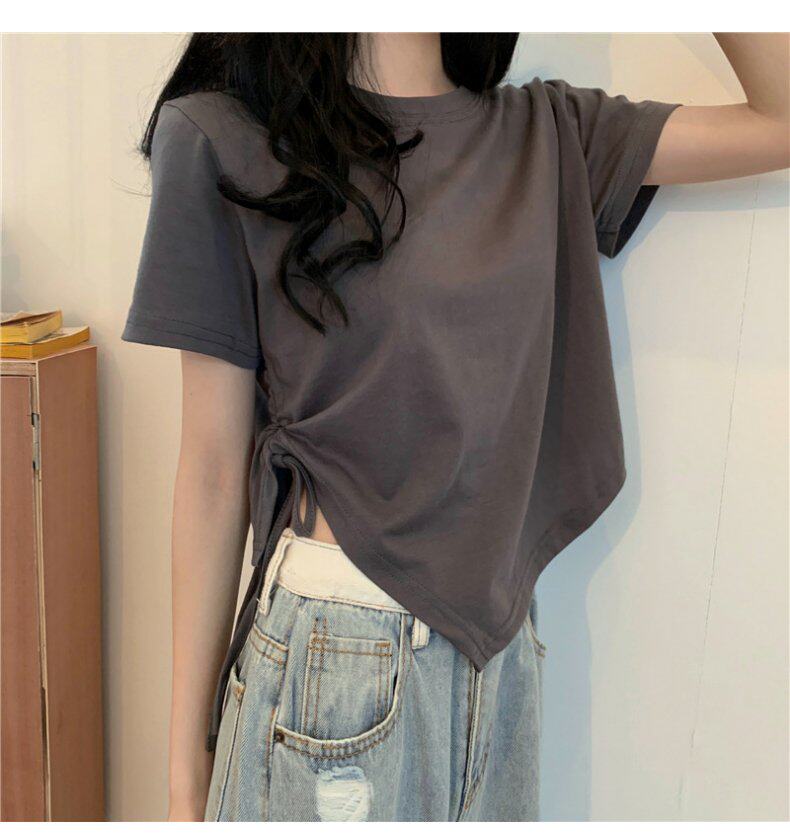 Короткая дизайнерская футболка, большой размер, короткий рукав, на шнурках, тренд сезона