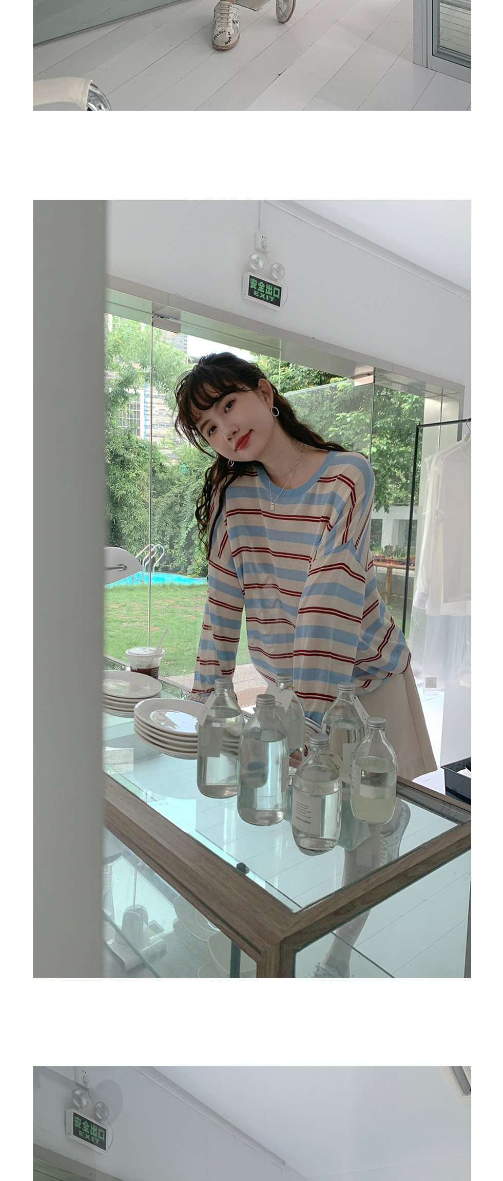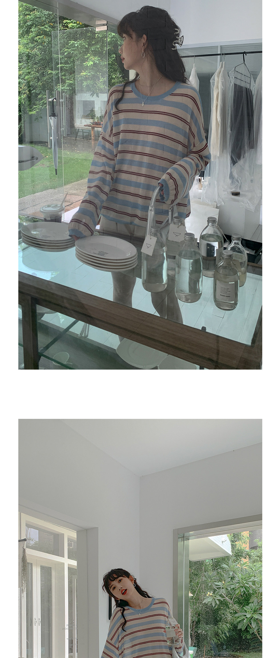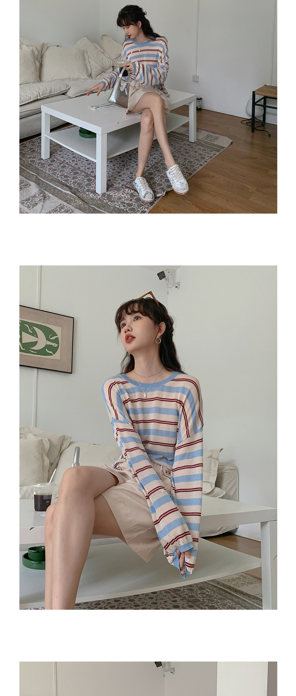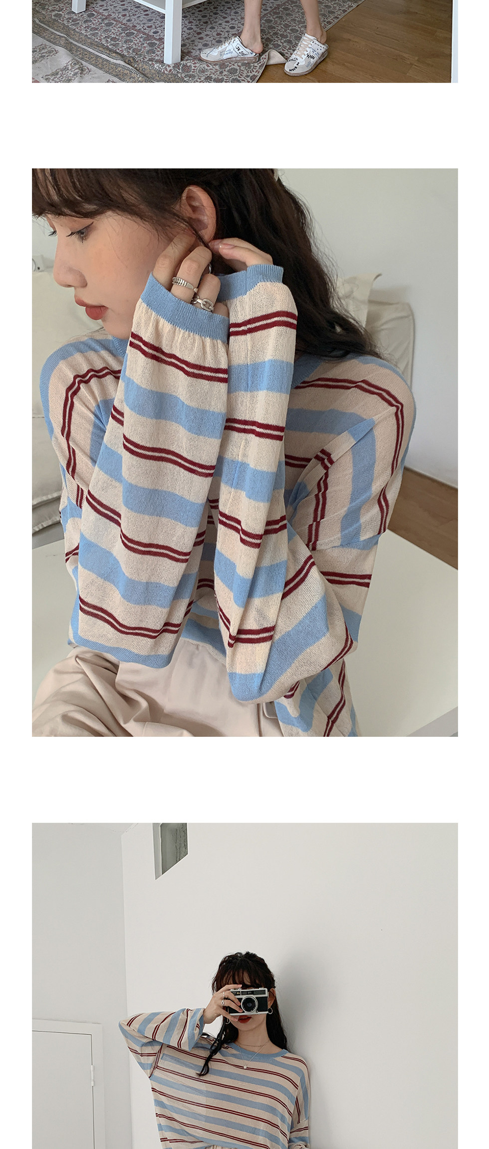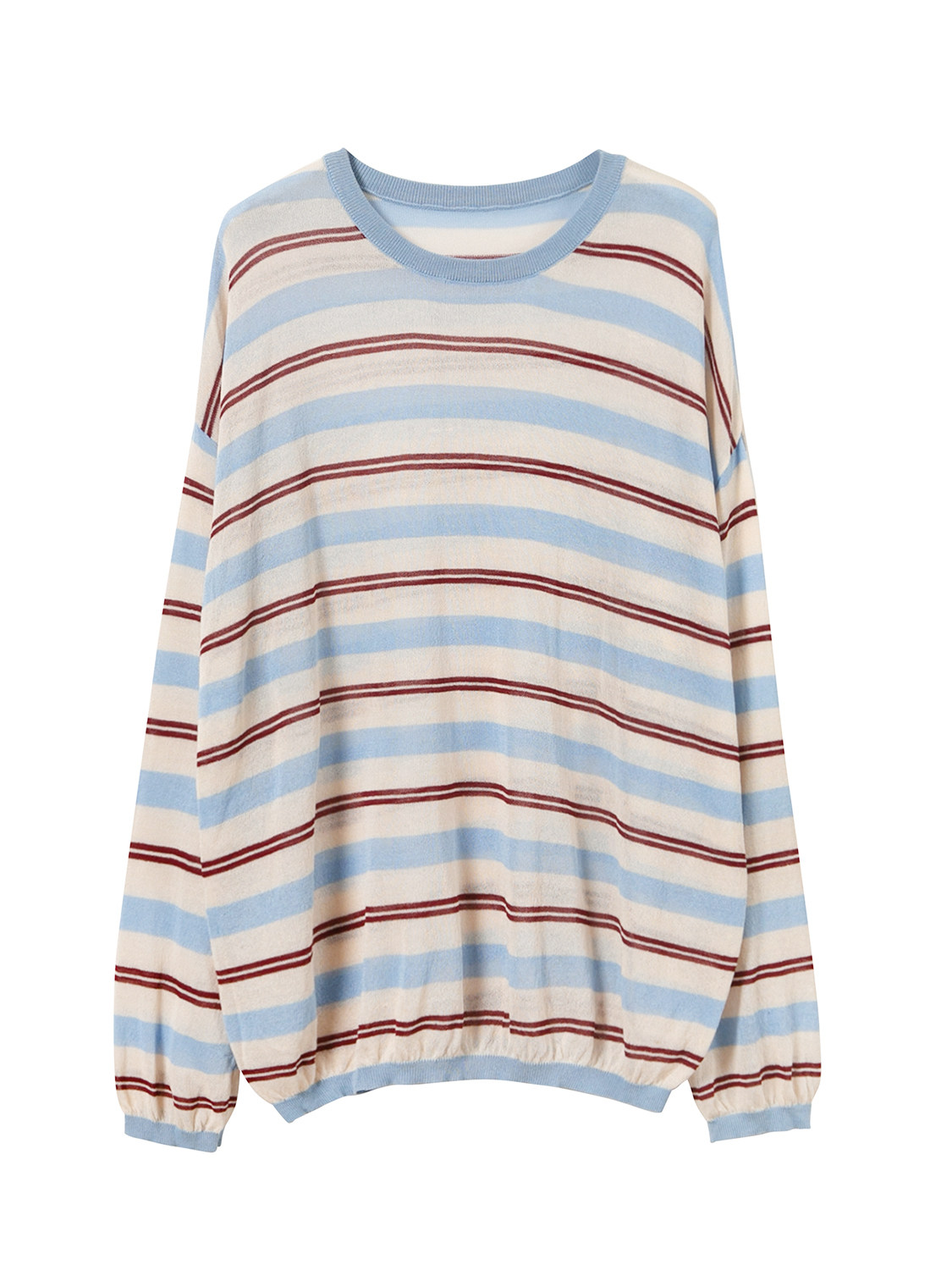 Трикотажный лонгслив, летний тонкий свитер для отдыха с круглым воротником, оверсайз, защита от солнца