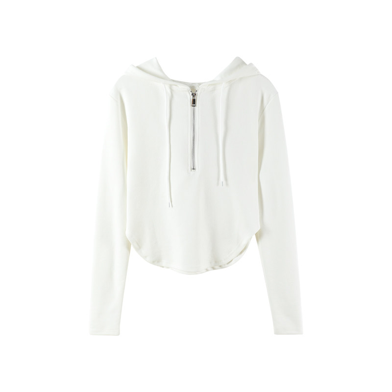 Белая короткая толстовка с капюшоном, дизайнерский тонкий лонгслив с молнией, коллекция 2023, в корейском стиле, тренд сезона