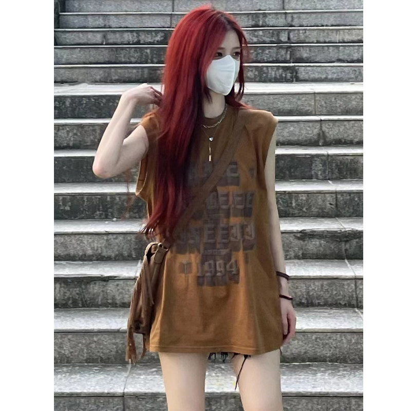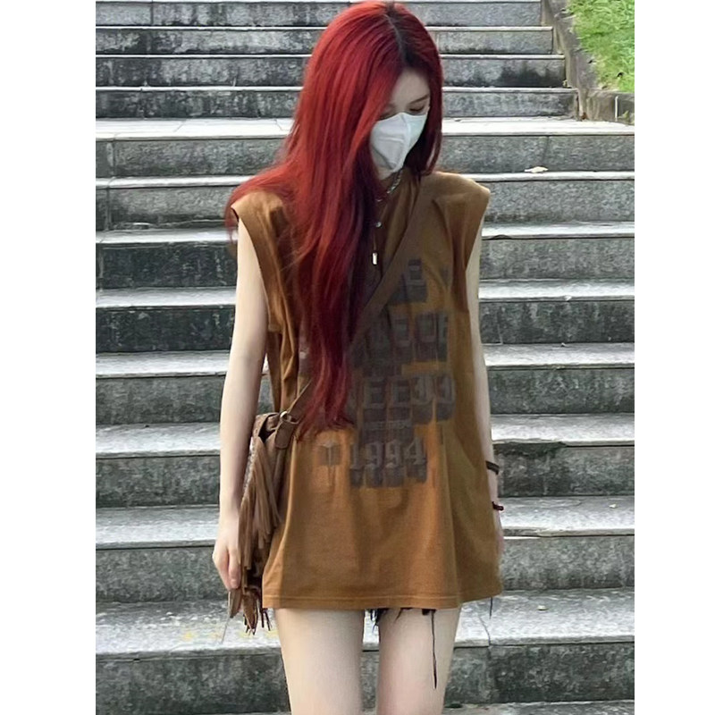 Модный жилет без рукавов, летняя футболка в стиле хип-хоп, США, свободный крой