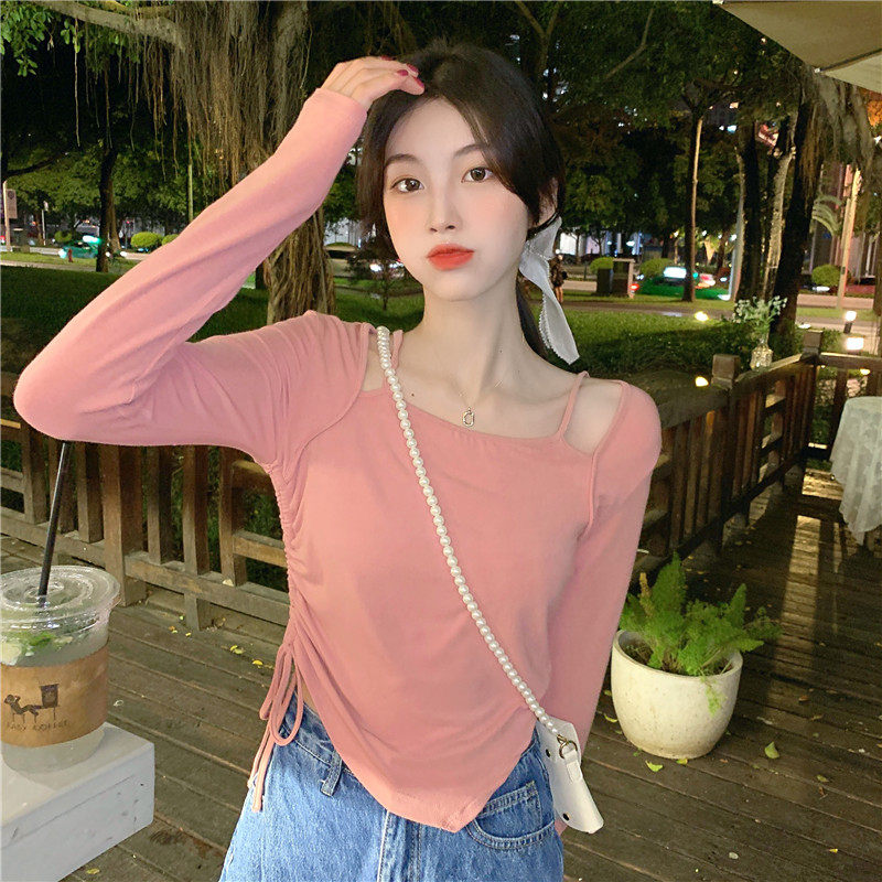 Летняя дизайнерская футболка, комплект, короткий базовый приятный телу лонгслив, тренд сезона, на шнурках, облегающий крой