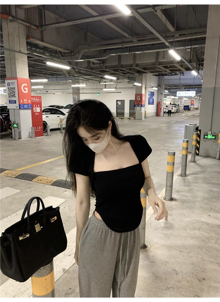Белая летняя короткая сексуальная базовая приятная телу футболка, квадратный вырез, облегающий крой