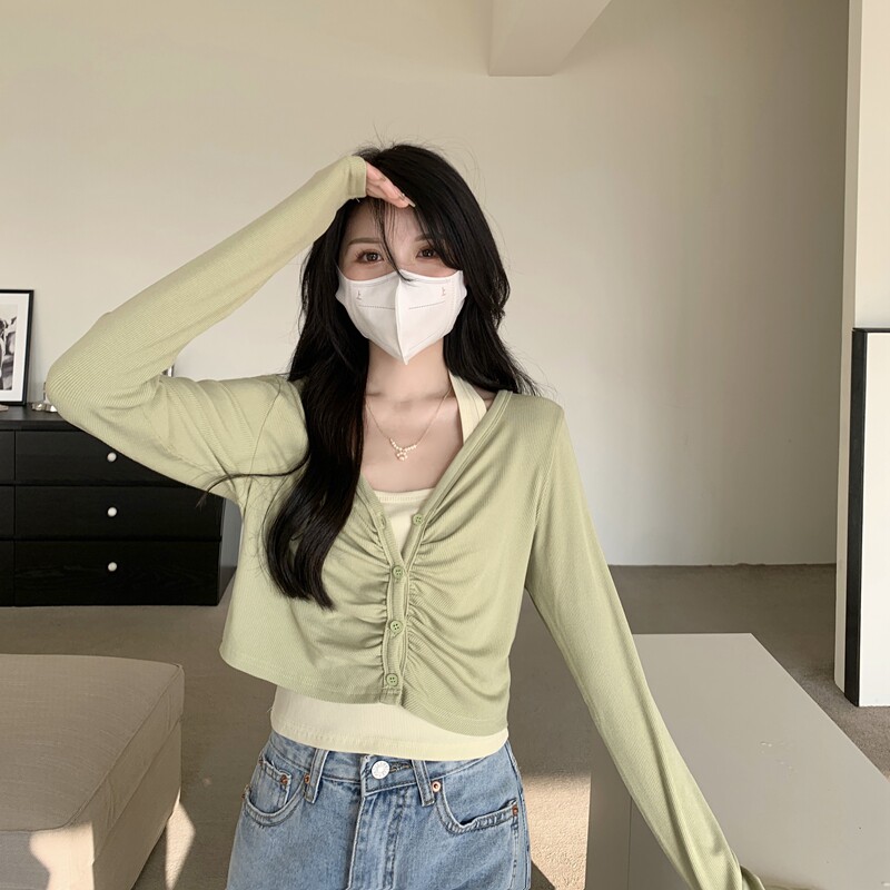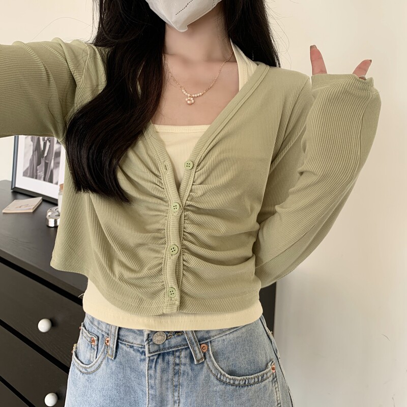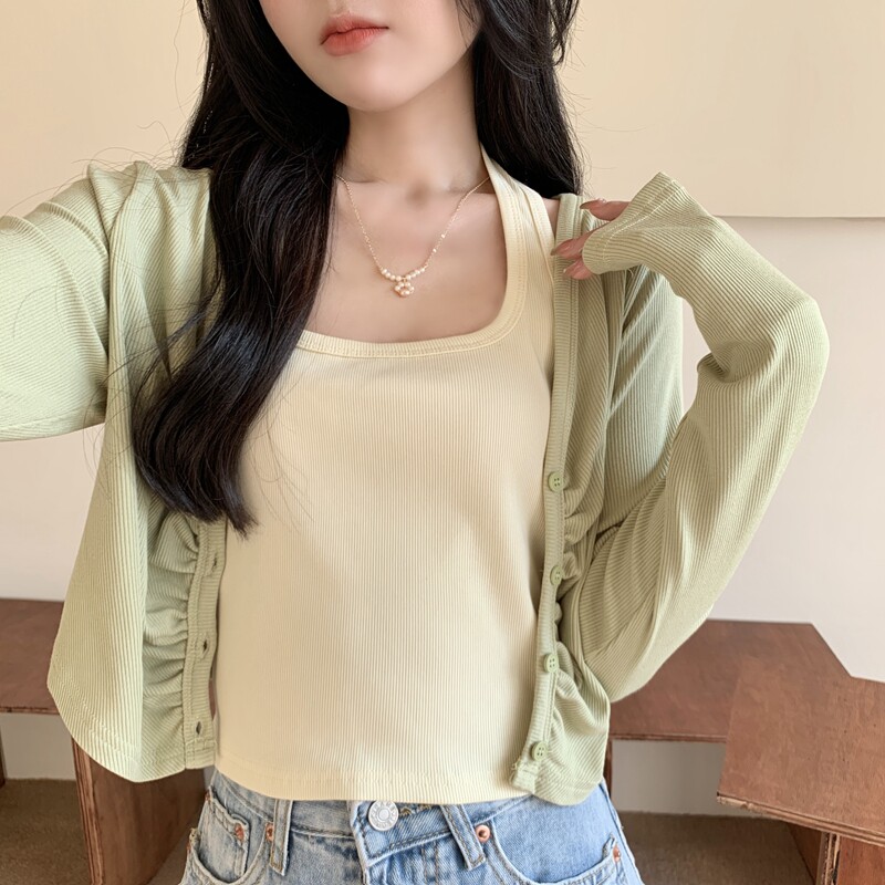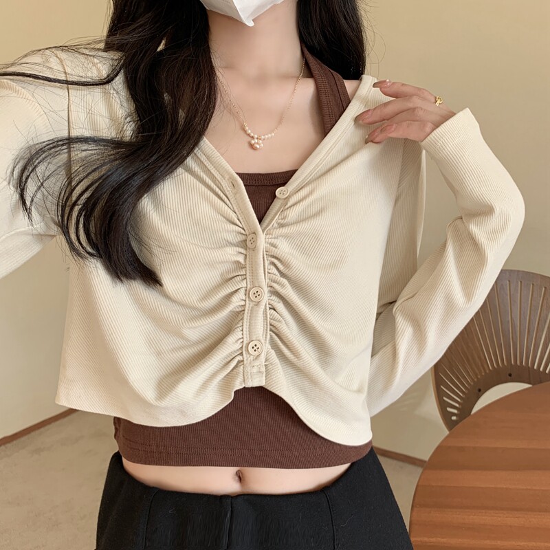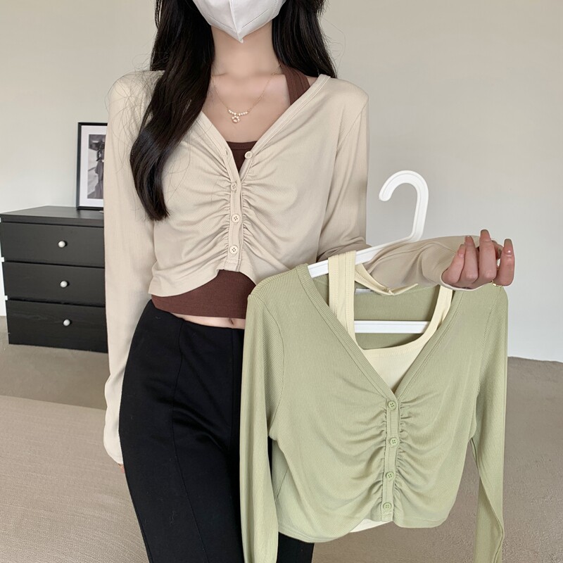 Абрикосовый осенний лонгслив, короткая майка топ, комплект