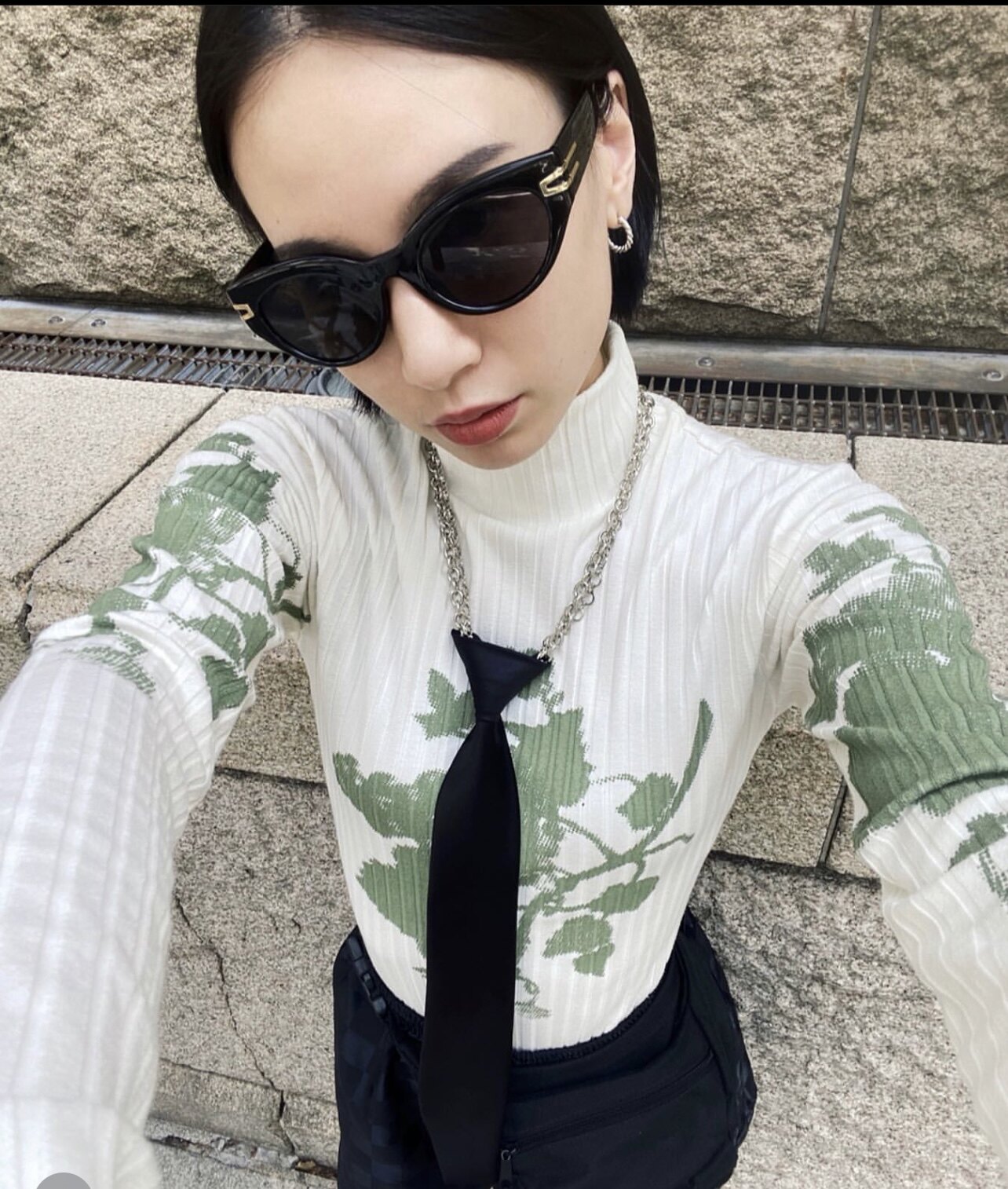 Дизайнерский приталенный лонгслив, в цветочек, принт