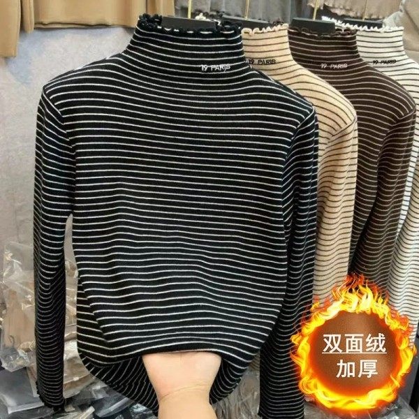Бархатный приятный телу демисезонный лонгслив, в корейском стиле, большой размер, увеличенная толщина, высокий воротник