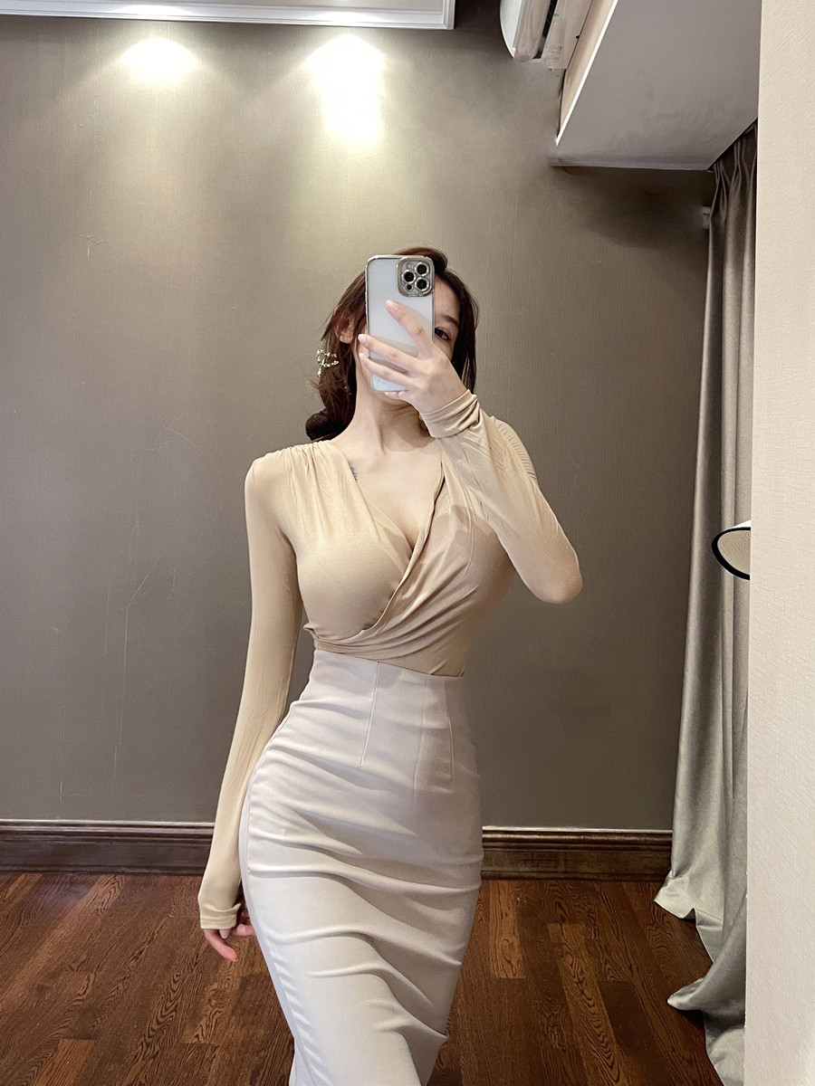 Сексуальный лонгслив, женская базовая футболка, V-образный вырез, яркий броский стиль