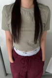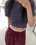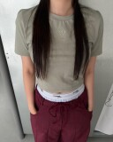 Однотонная футболка с коротким рукавом с круглым воротником, в американском стиле, с вышивкой, облегающий крой