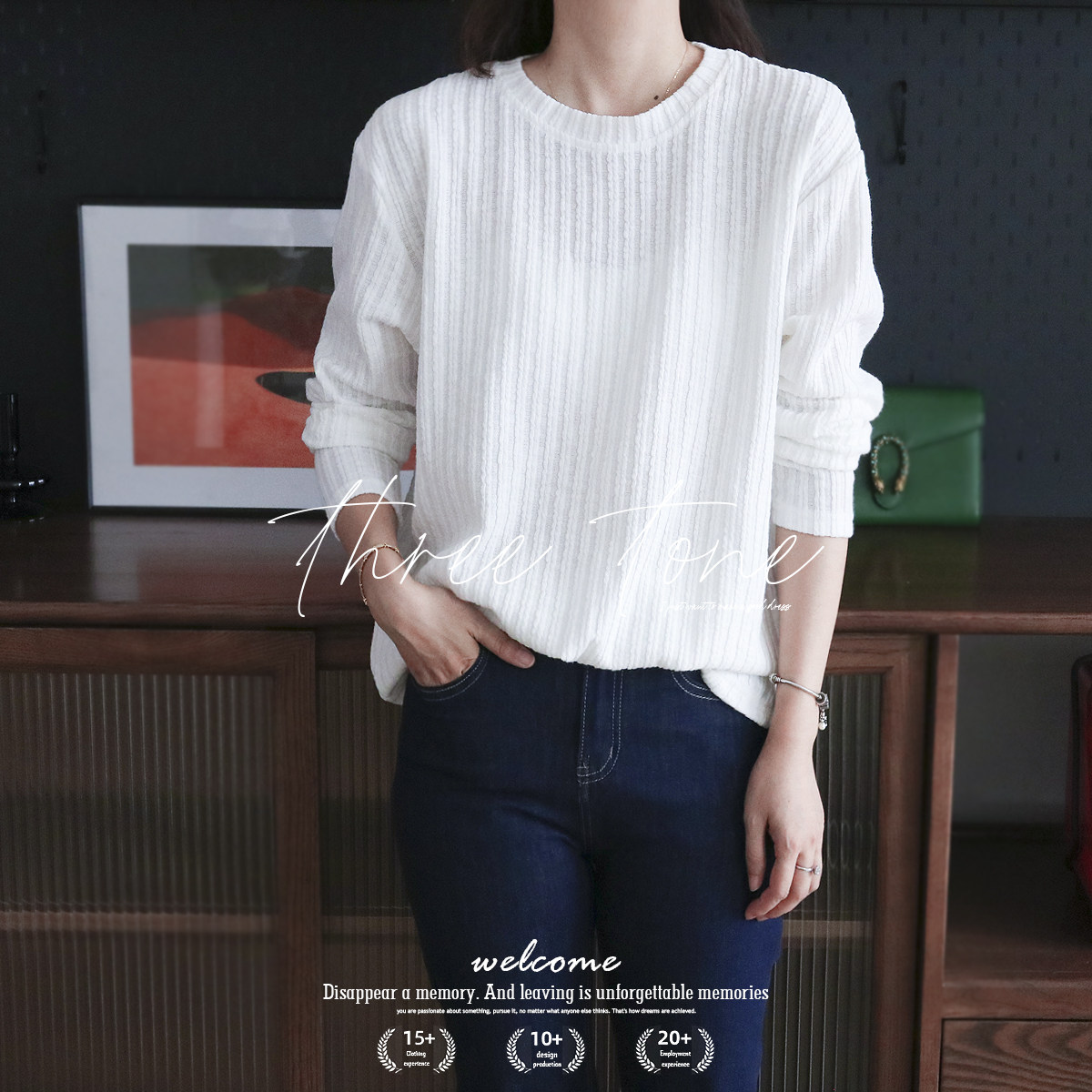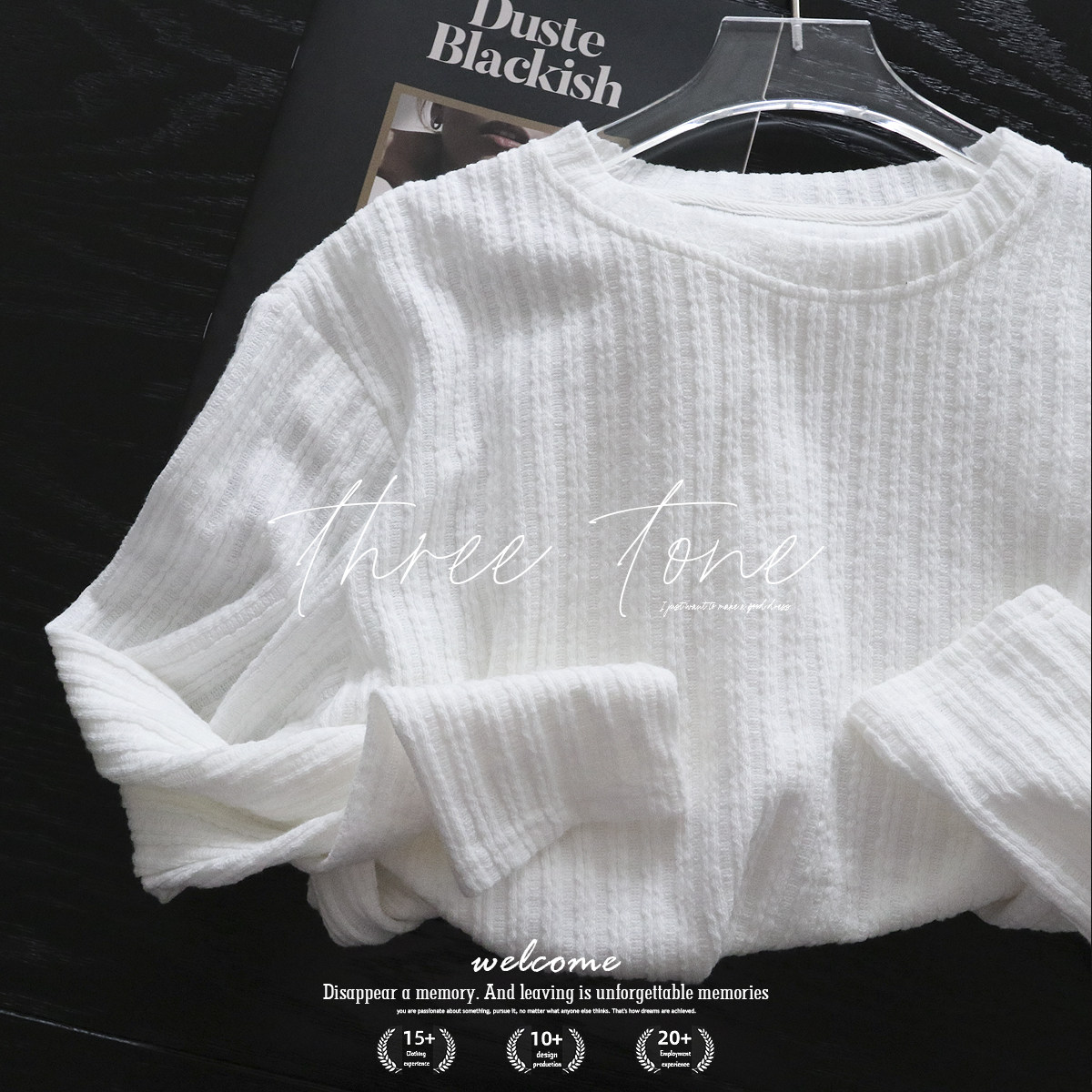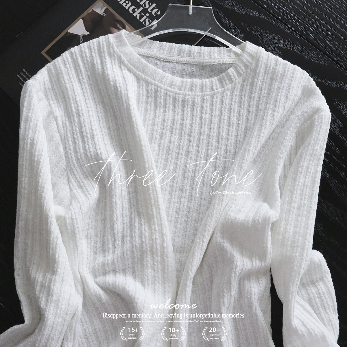 Комплект, трикотажная футболка с круглым воротником, белый базовый приятный телу лонгслив