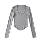 Приталенный изогнутый лонгслив, европейский стиль