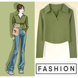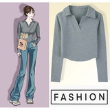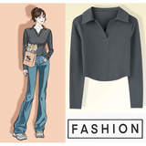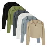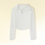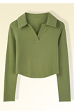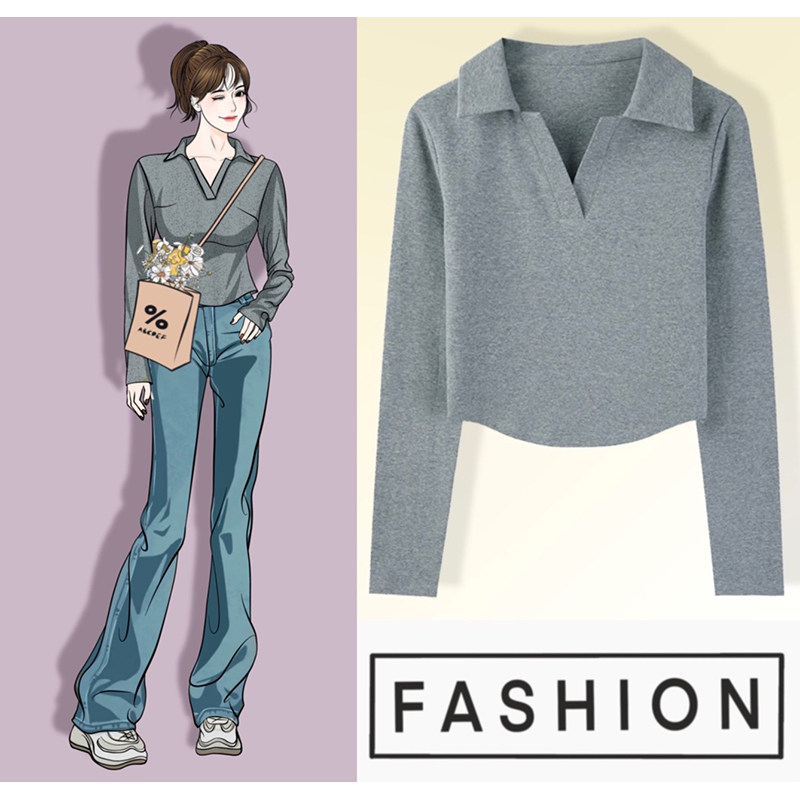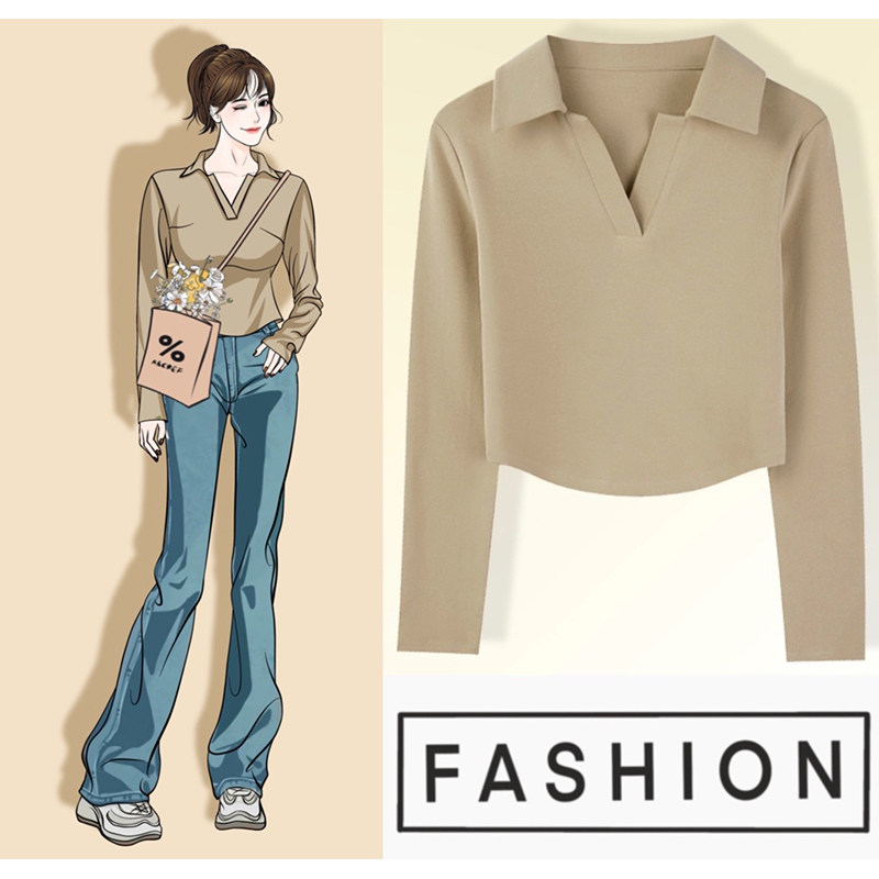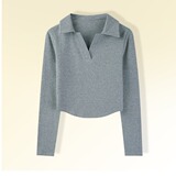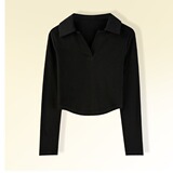 Осенняя футболка, базовый приятный телу короткий лонгслив, воротник поло, облегающий крой, V-образный вырез