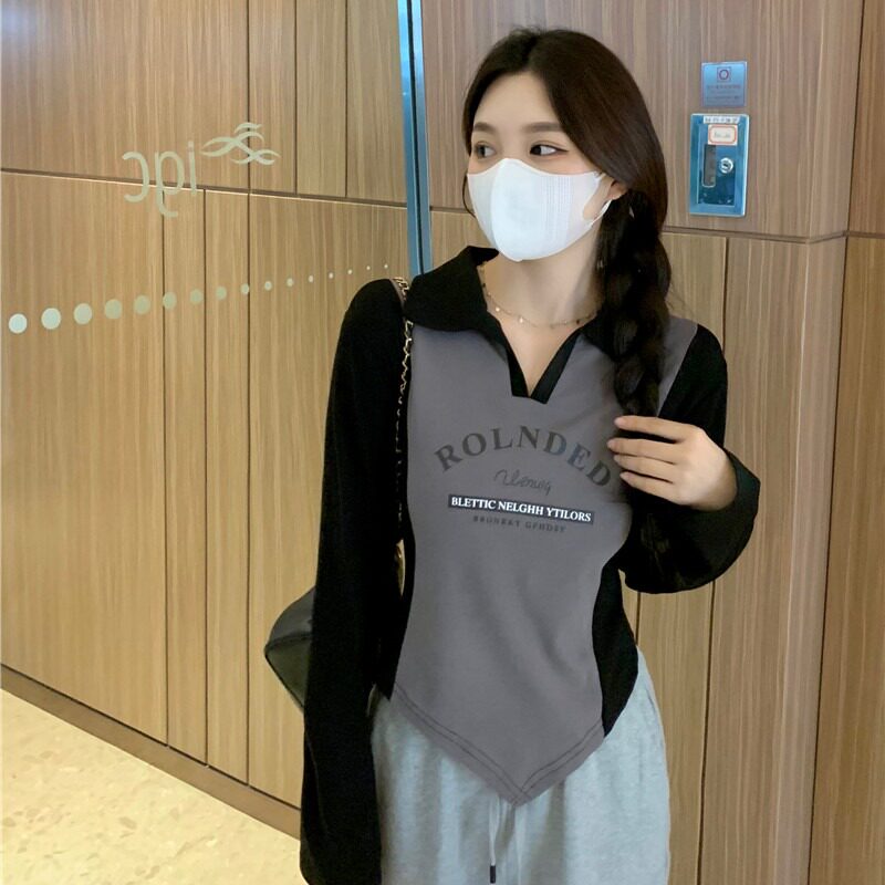 Весенняя дизайнерская футболка, приталенный корсет, большого размера (2023), тренд сезона, воротник поло
