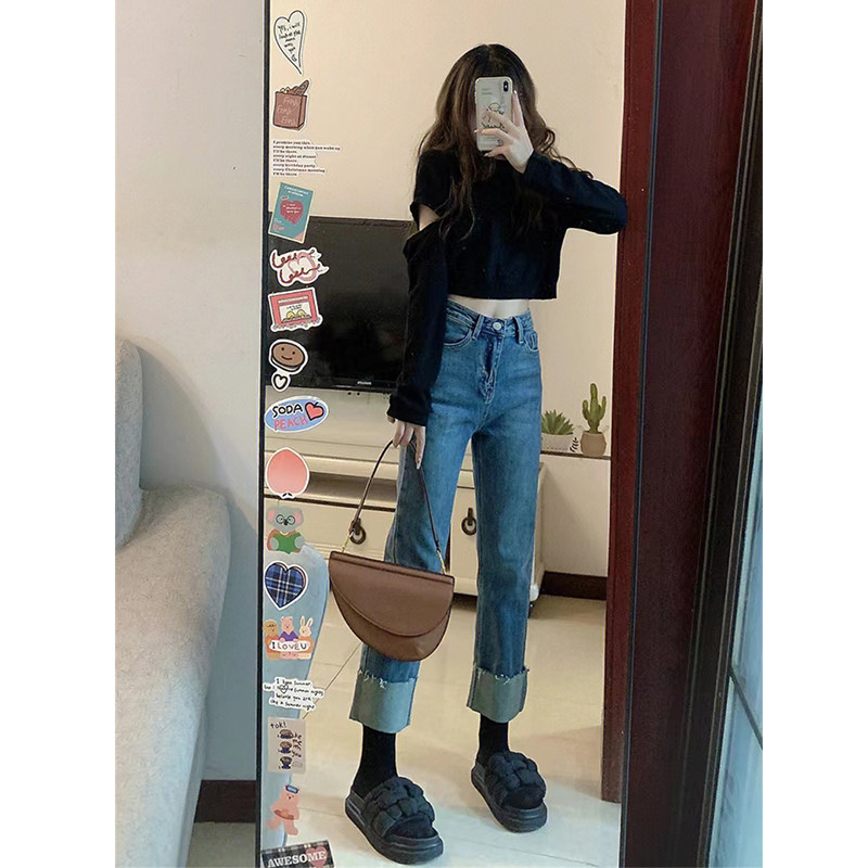 Цвет: Черный/шикарный топ - сладкая/шикарная/нежная/нежная система, Джинсы