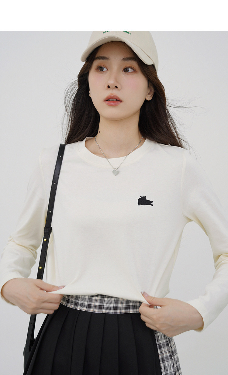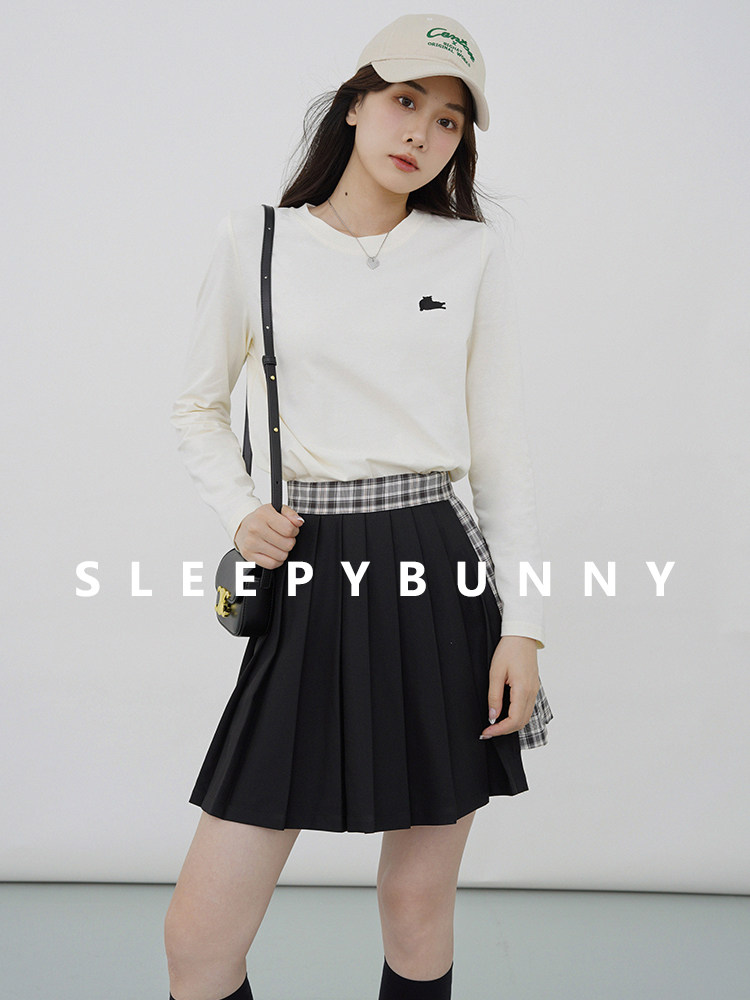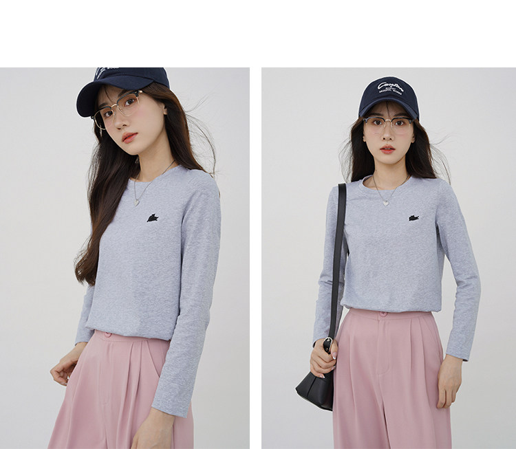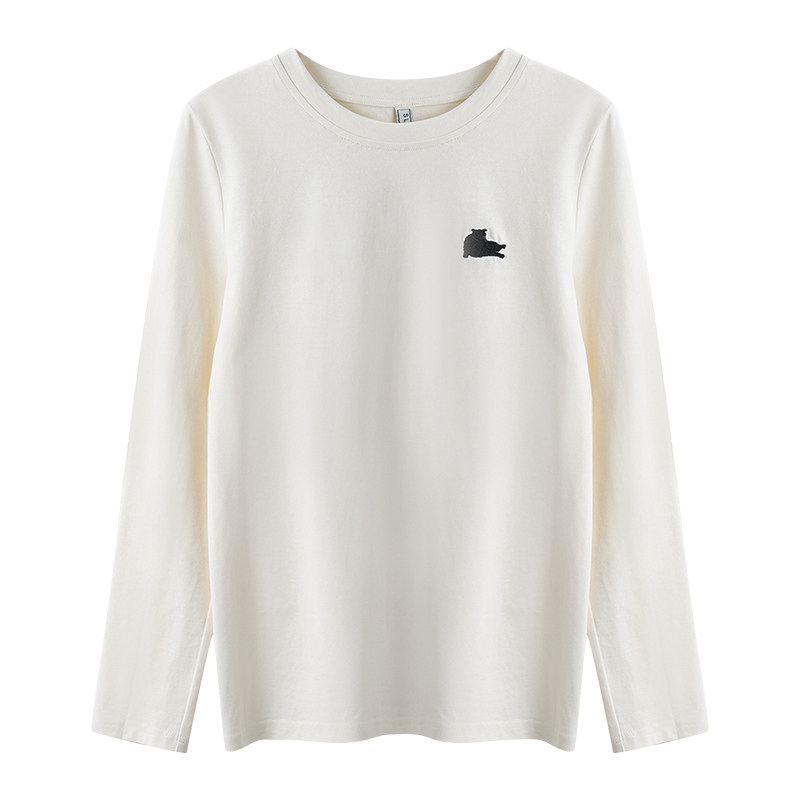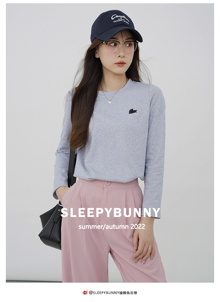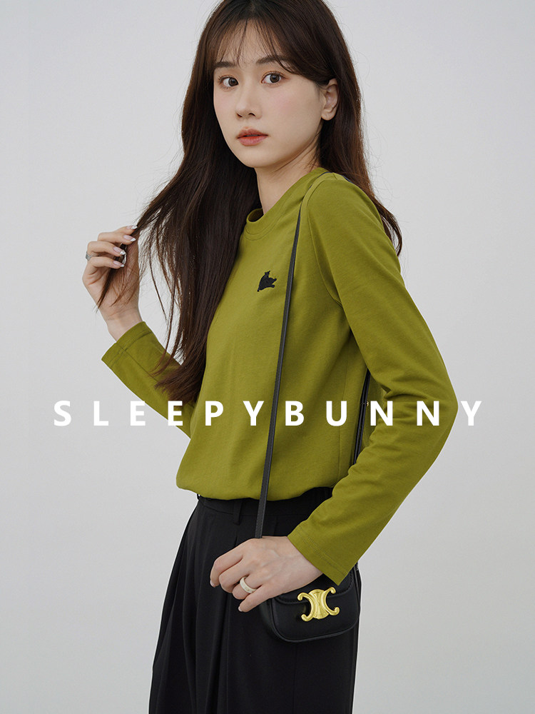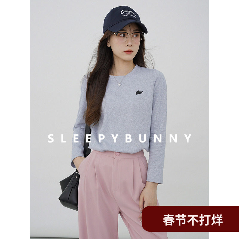 瞌睡兔 Лонгслив, приятная телу осенняя футболка, с вышивкой, свободный крой