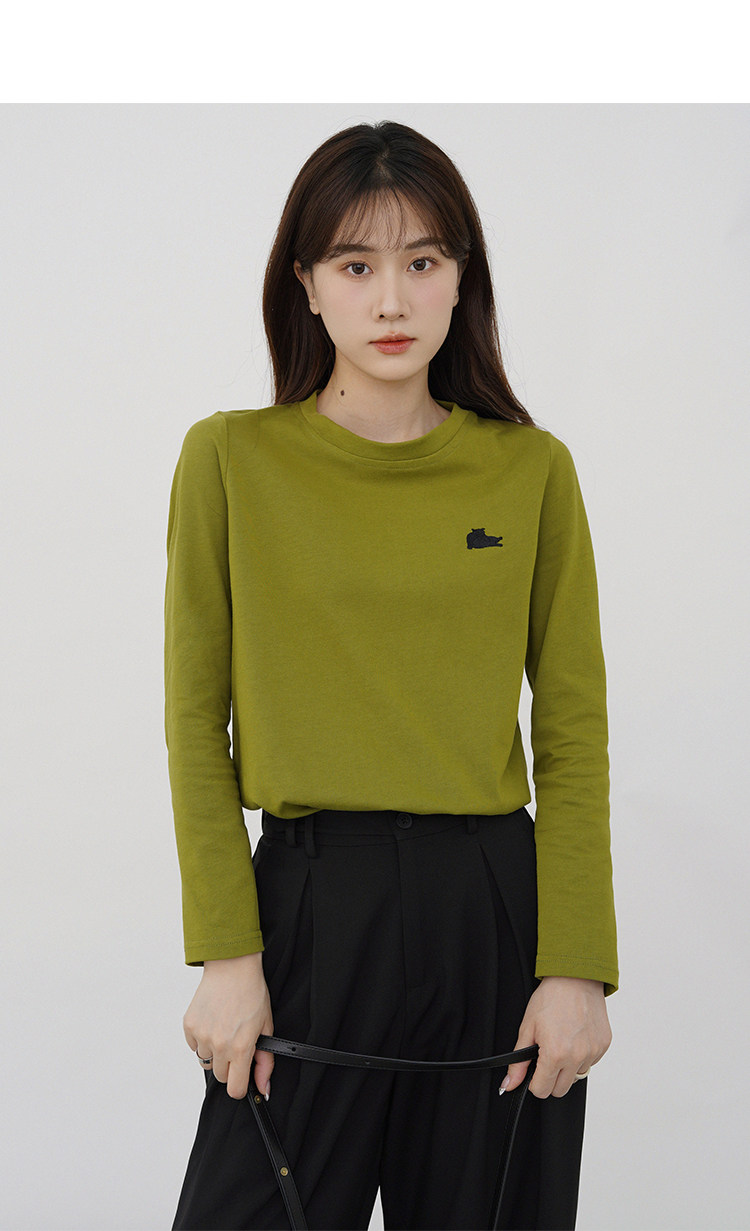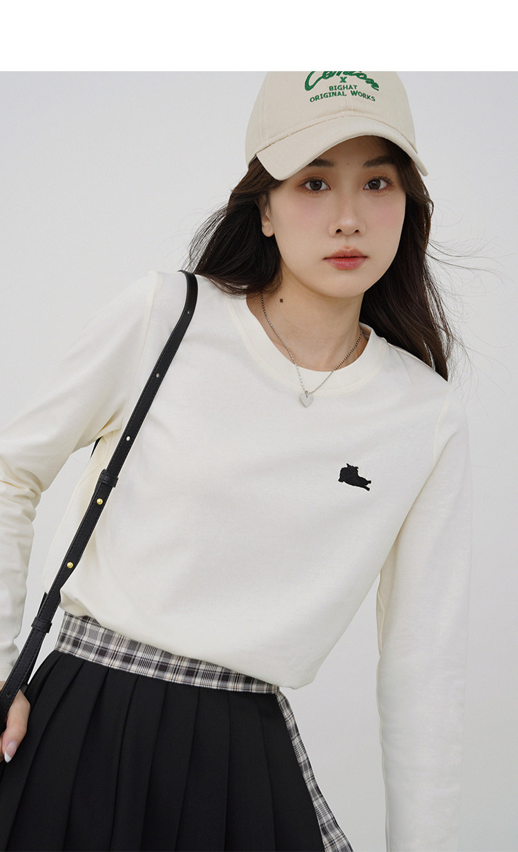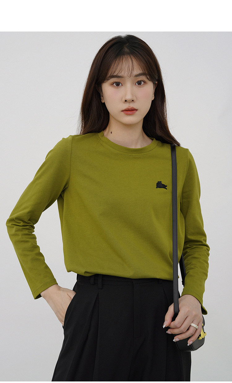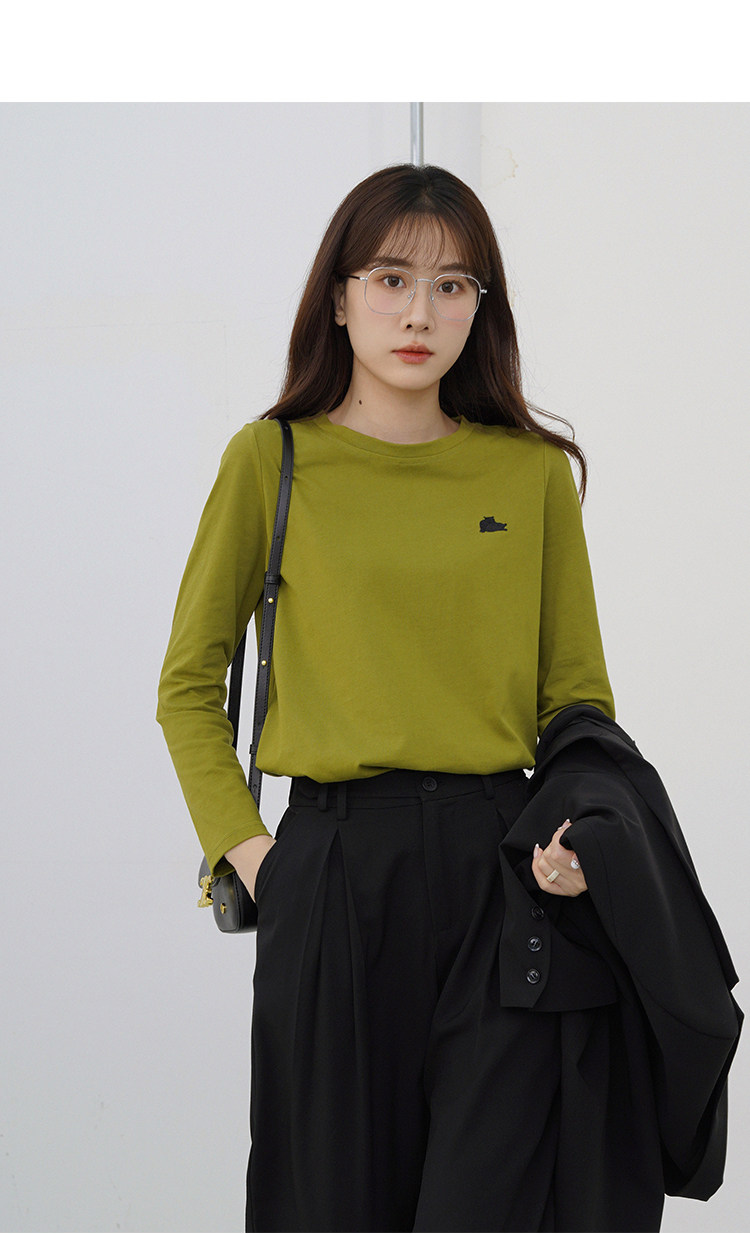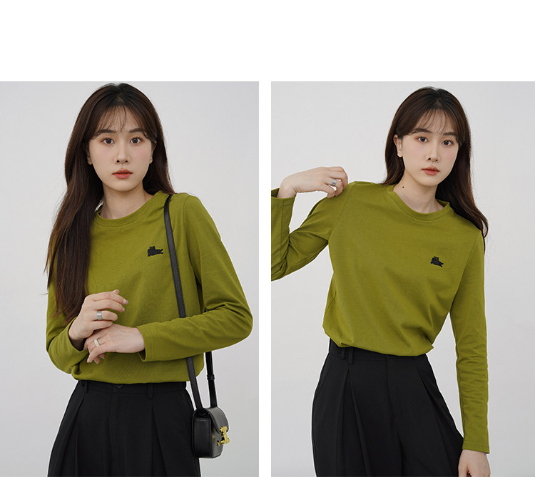 瞌睡兔 Лонгслив, приятная телу осенняя футболка, с вышивкой, свободный крой
