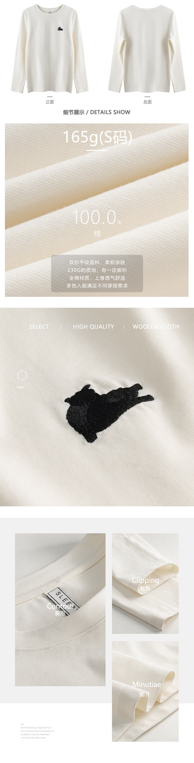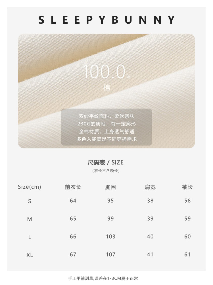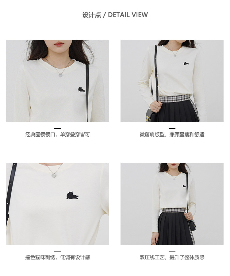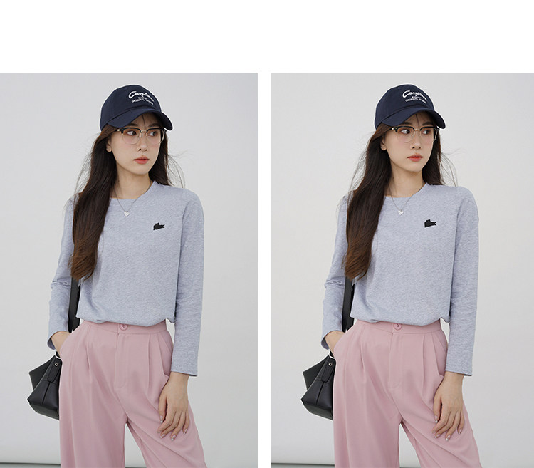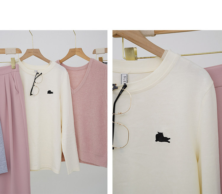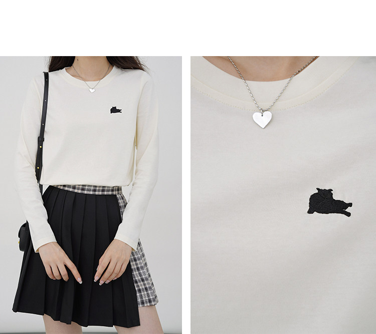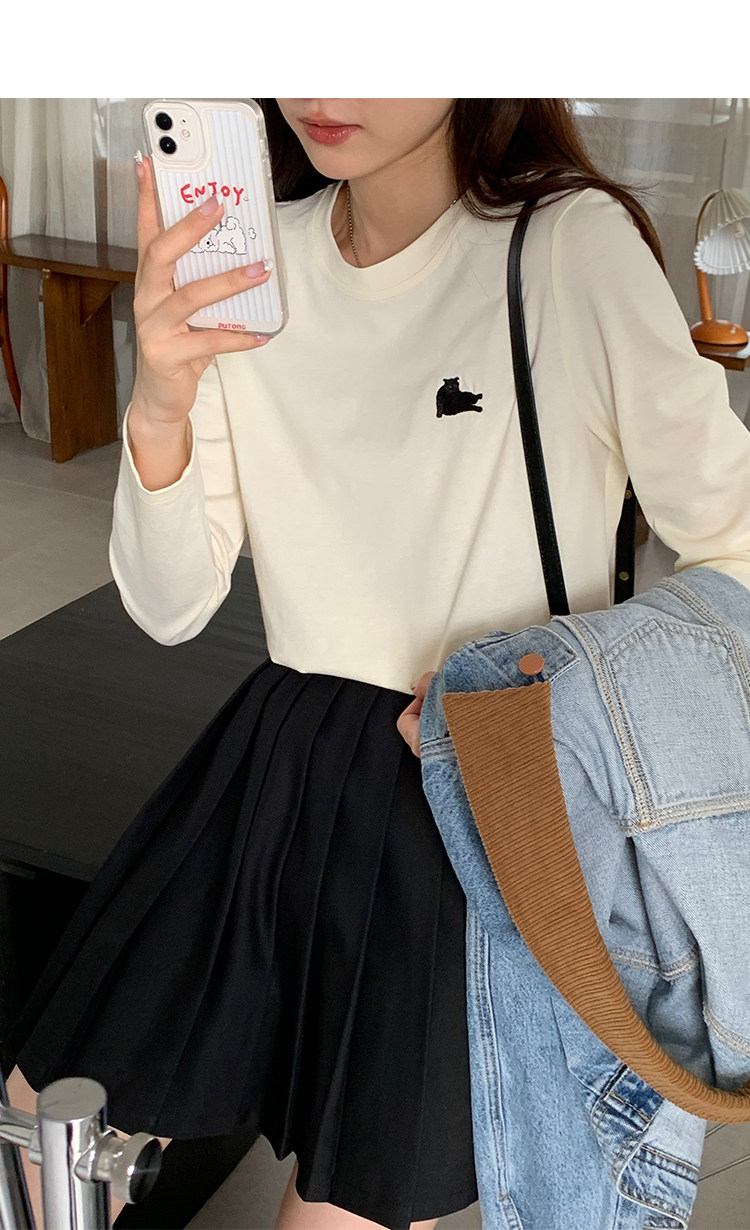 瞌睡兔 Лонгслив, приятная телу осенняя футболка, с вышивкой, свободный крой