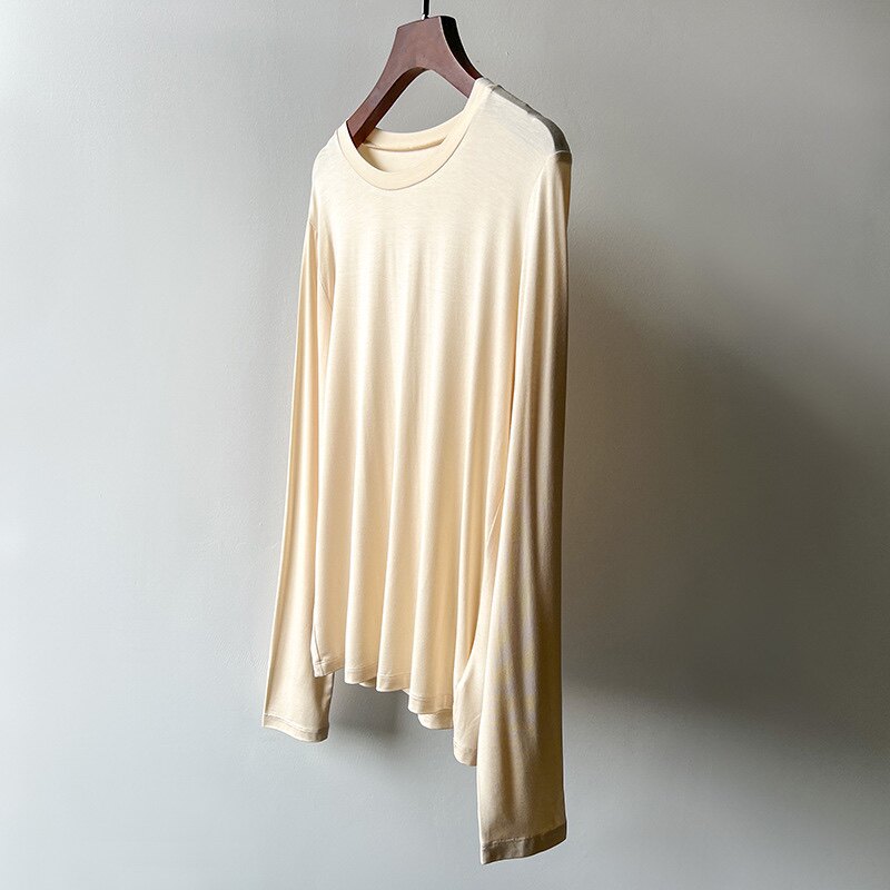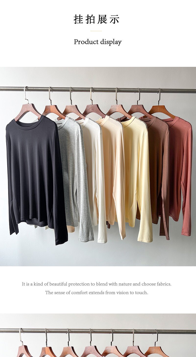 Базовый приятный телу эластичный тонкий лонгслив, базовая футболка с круглым воротником