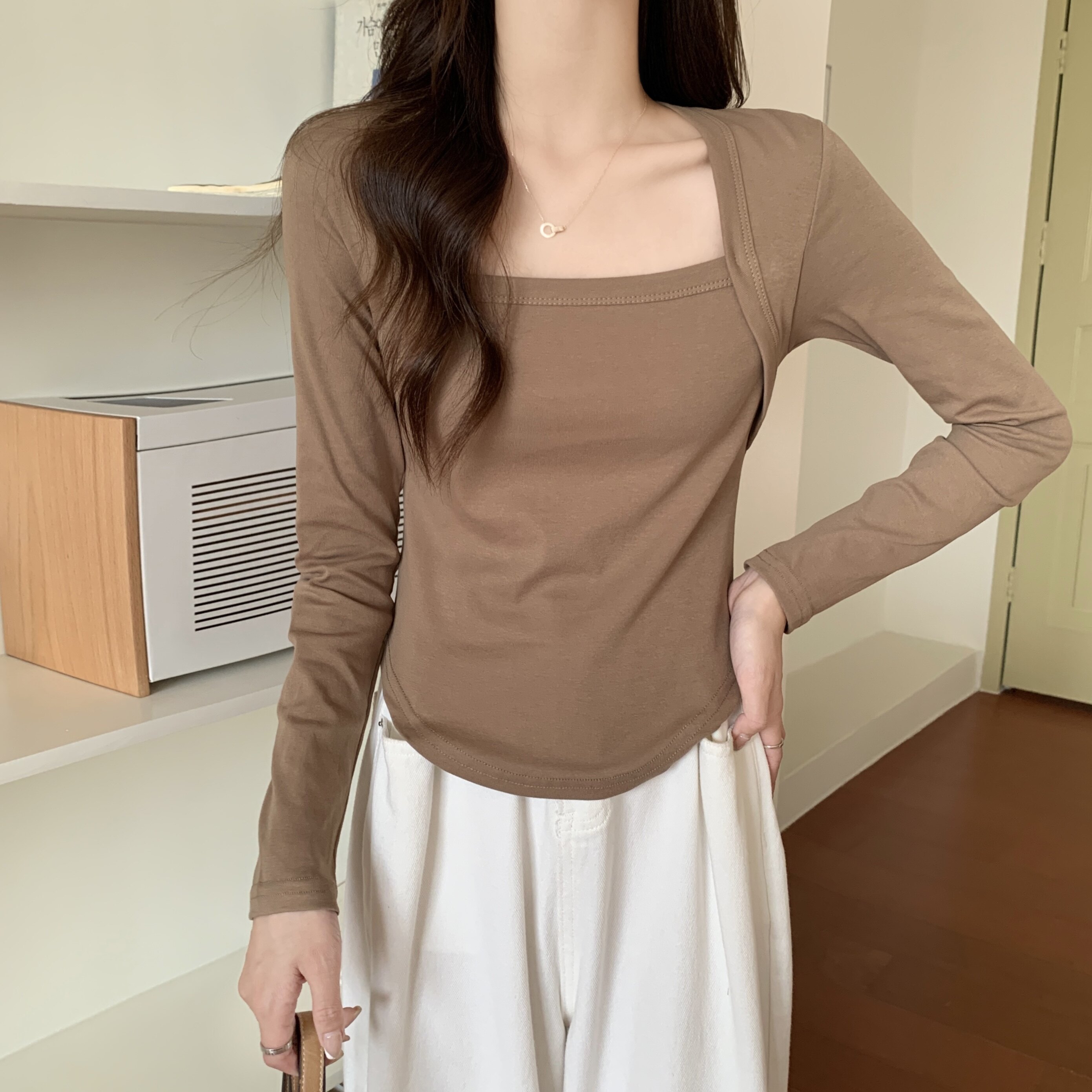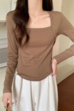 Лонгслив, большой размер, в обтяжку, квадратный вырез, по фигуре