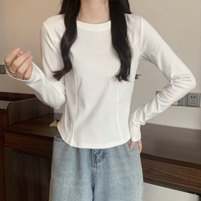 Белый лонгслив, осенняя дизайнерская приталенная футболка, тренд сезона, изысканный стиль