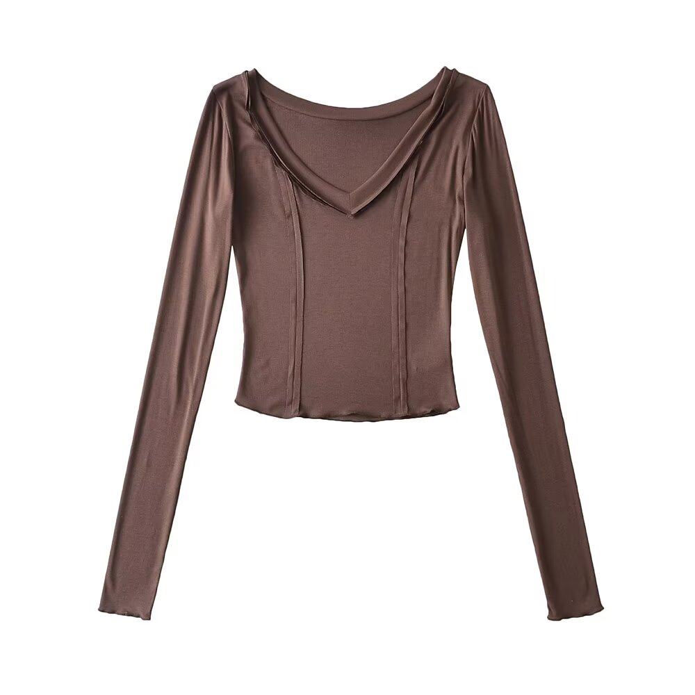 Сексуальный ретро приталенный лонгслив, европейский стиль, V-образный вырез