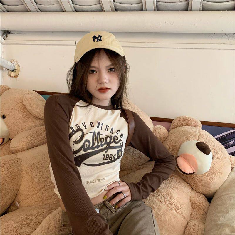 Ретро трикотажный лонгслив, большой размер, свободный крой, в американском стиле, осенний