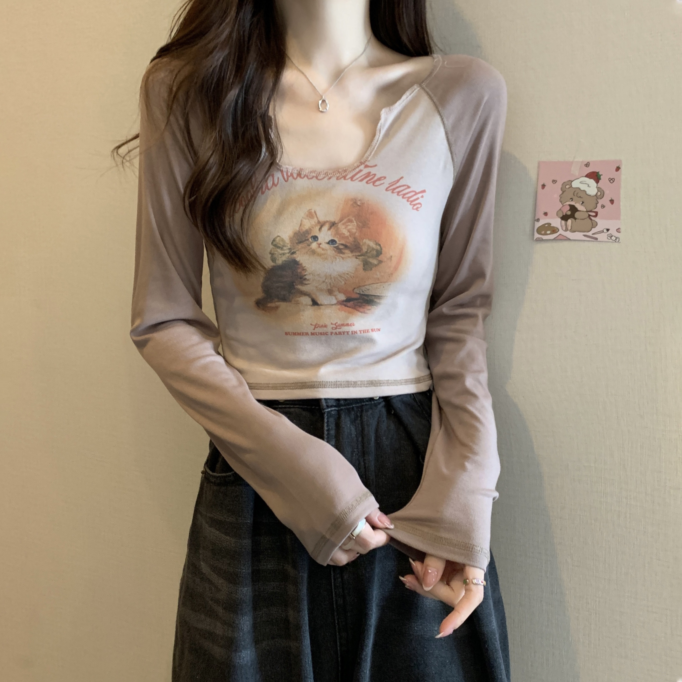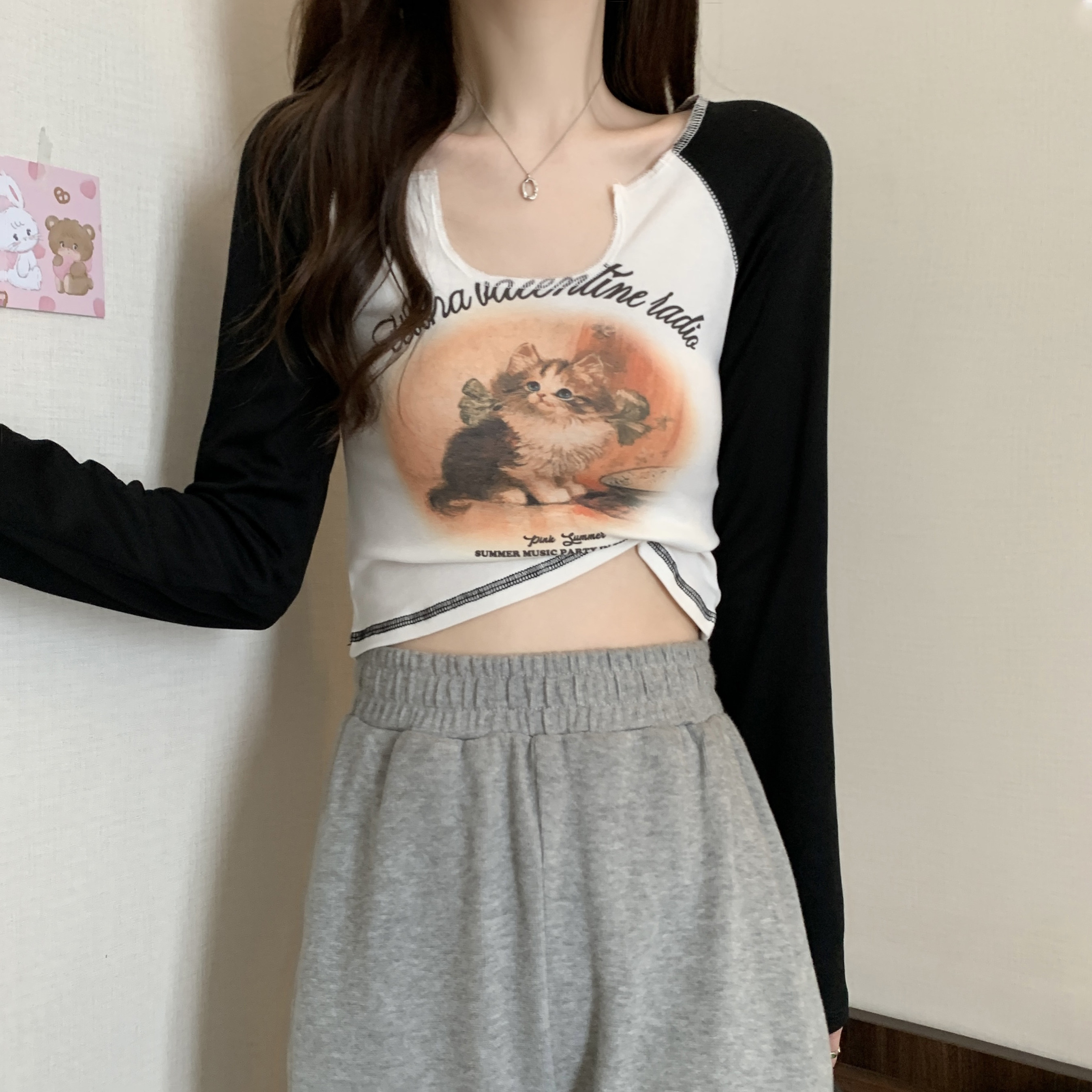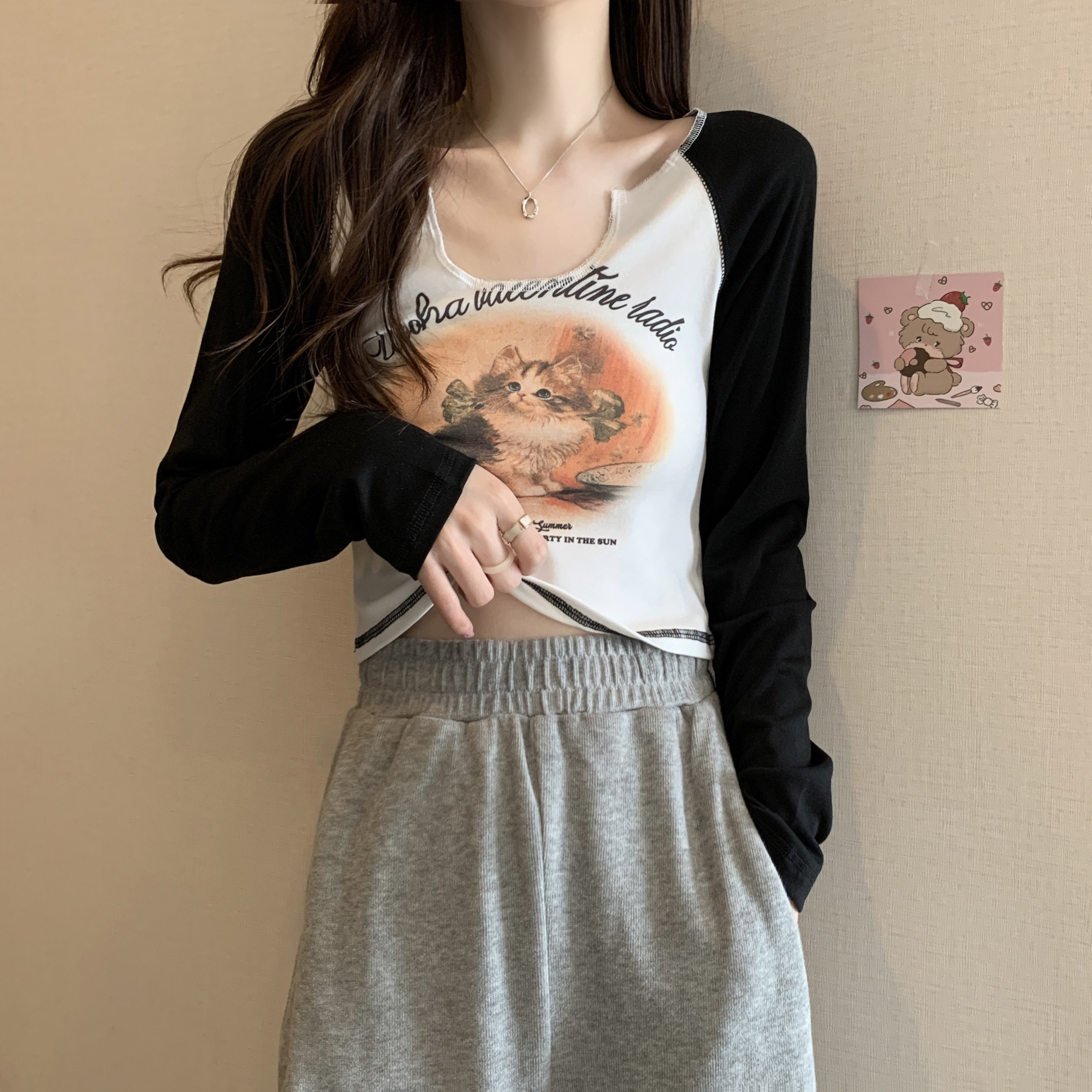 Осенний дизайнерский базовый приятный телу лонгслив, тренд сезона, в обтяжку