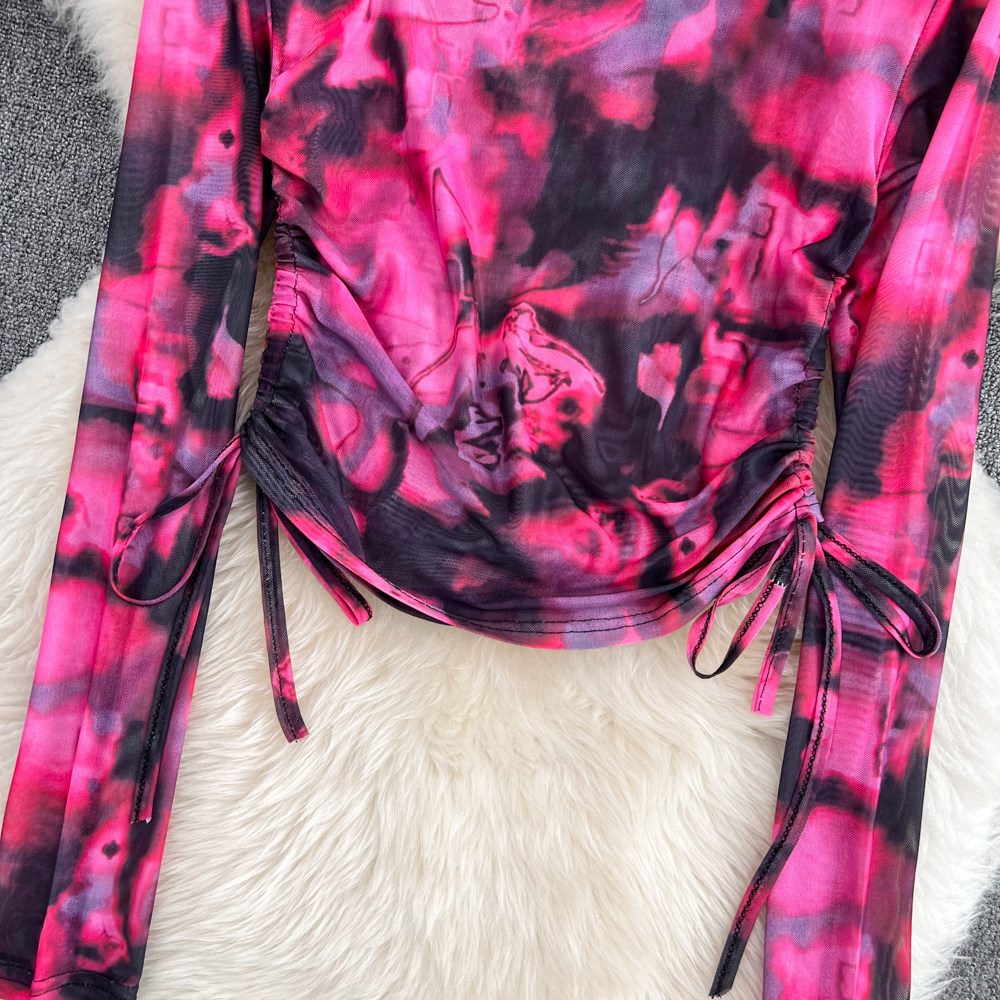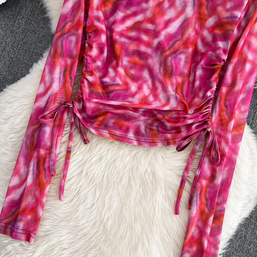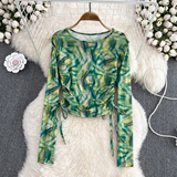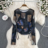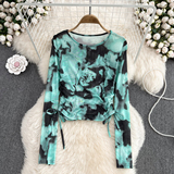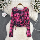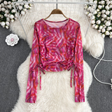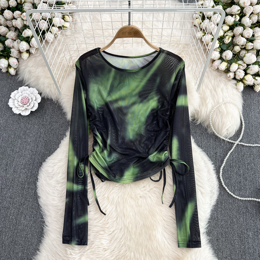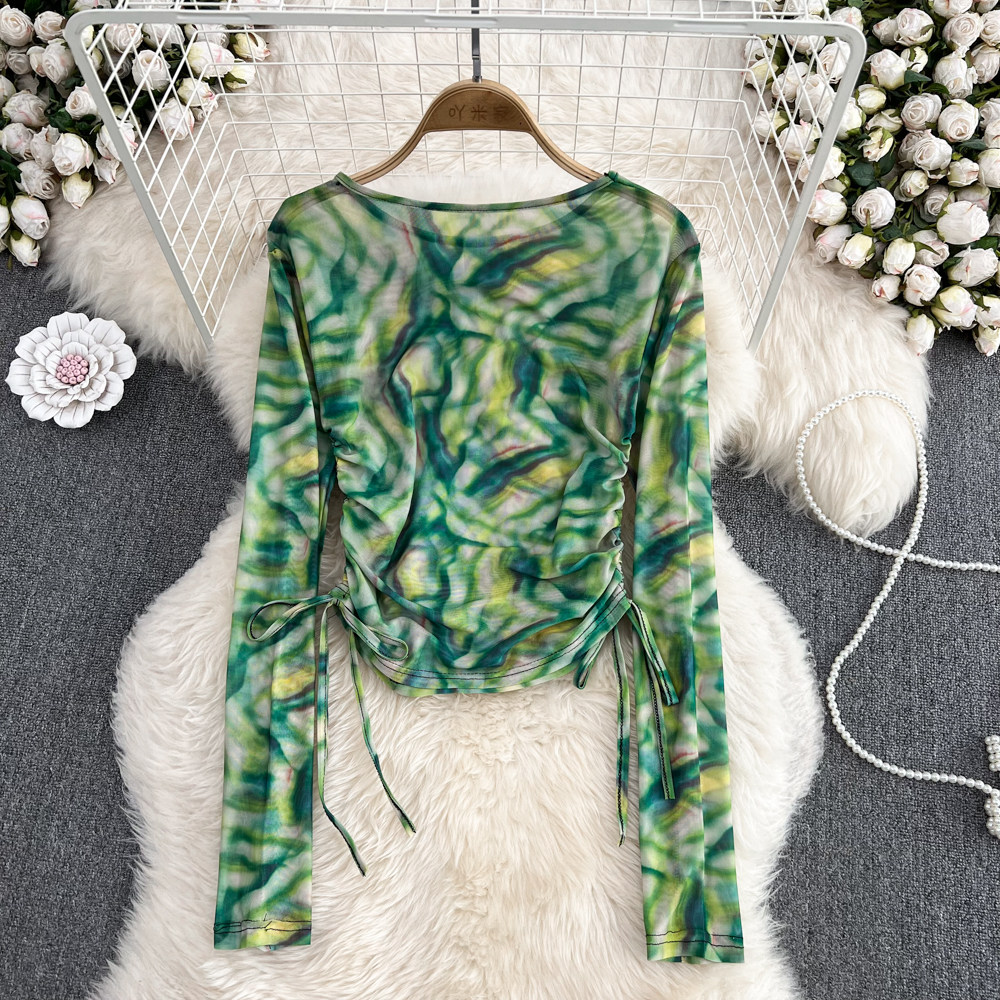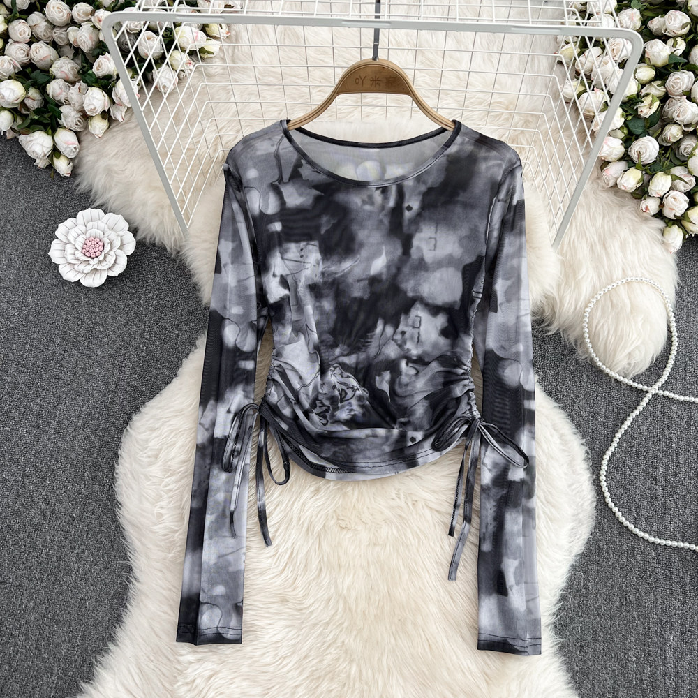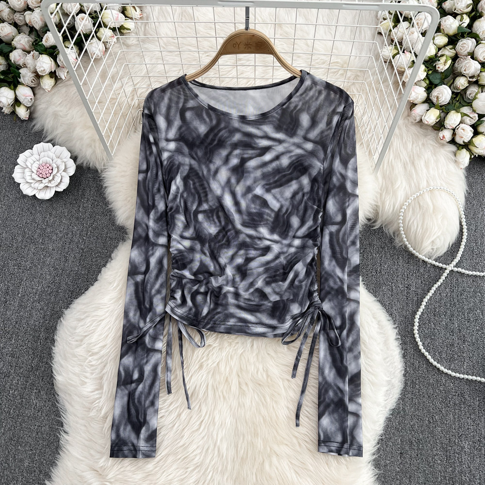 Осенний тонкий короткий лонгслив с круглым воротником, в корейском стиле, защита от солнца, в западном стиле, на шнурках