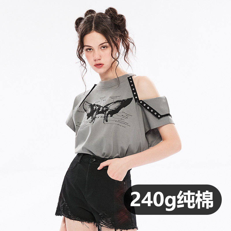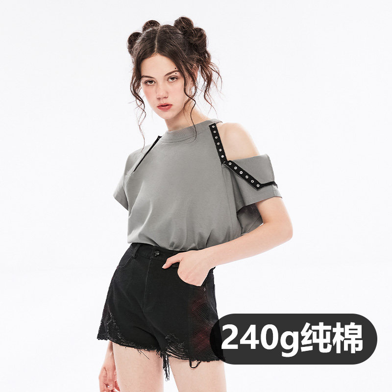 Летняя черная дизайнерская футболка с коротким рукавом, в стиле панк, тренд сезона