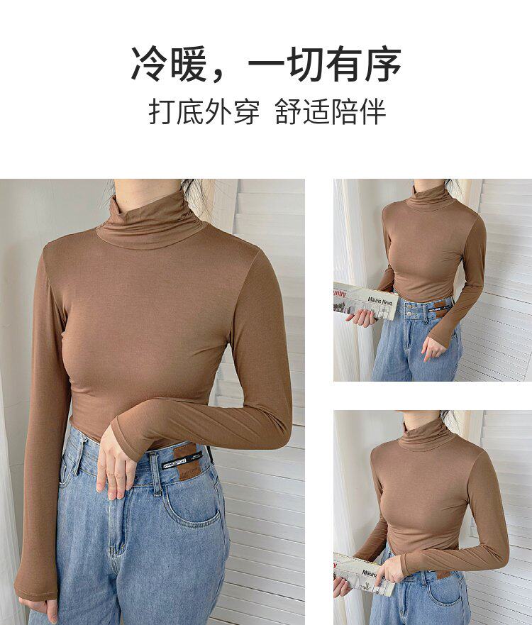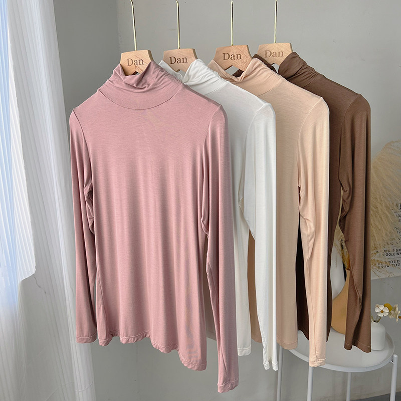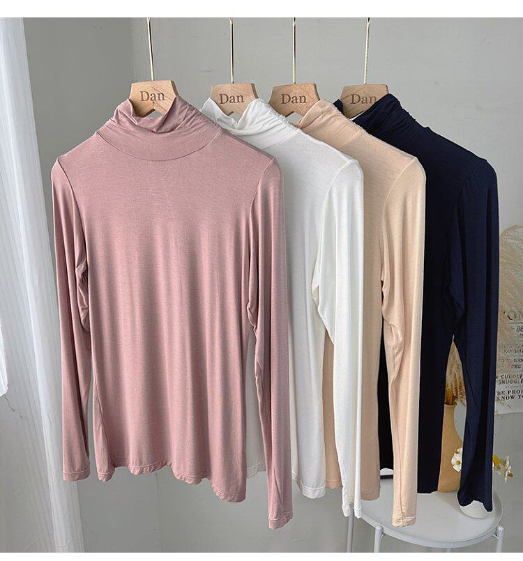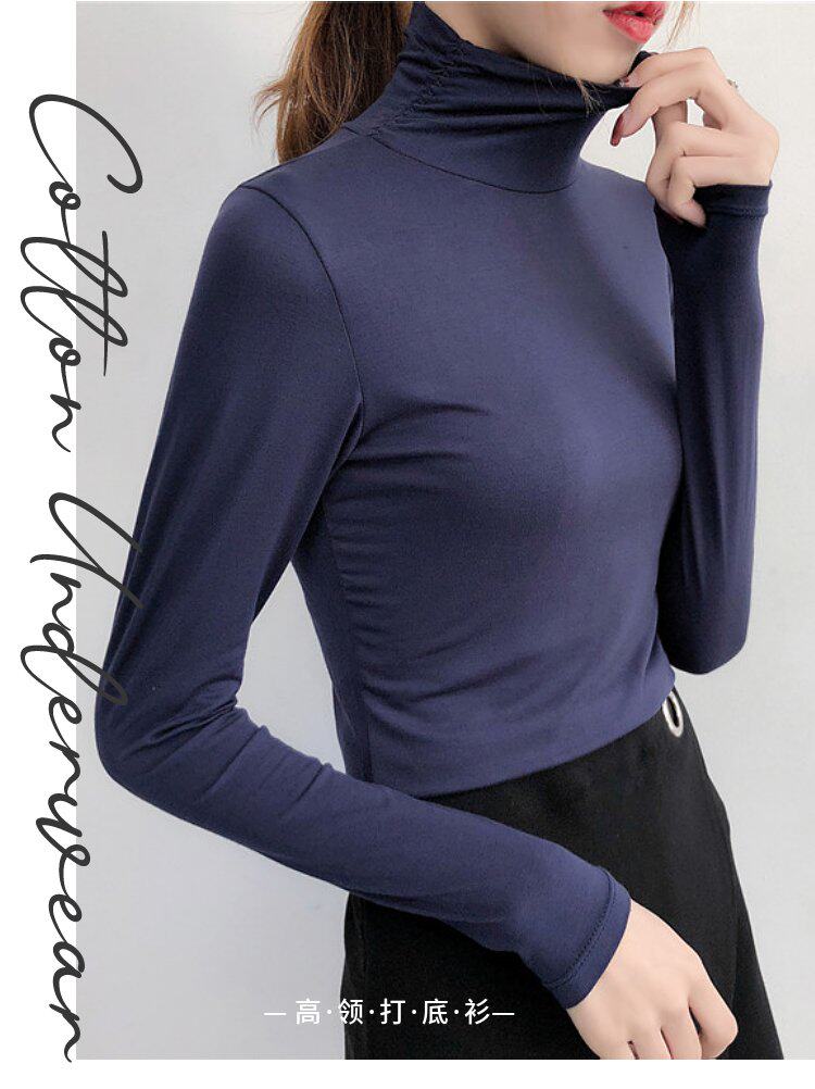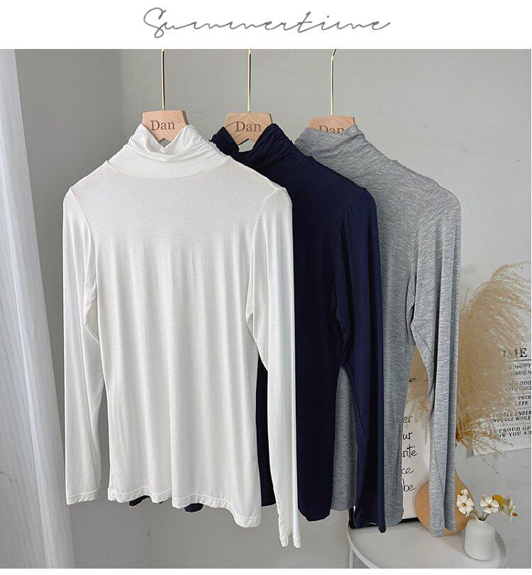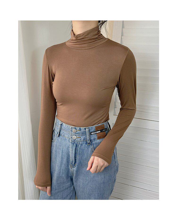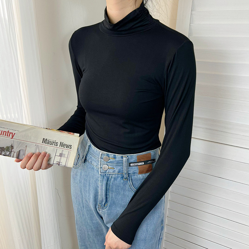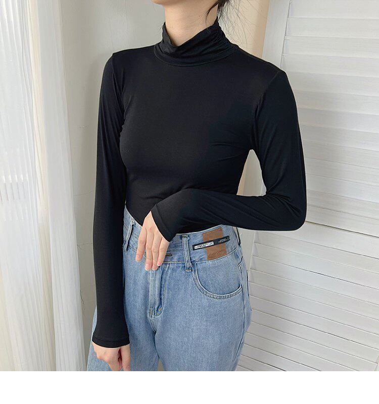 Базовый приятный телу демисезонный приталенный тонкий лонгслив для школьников и студентов, высокий воротник