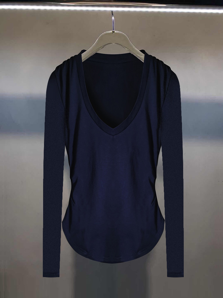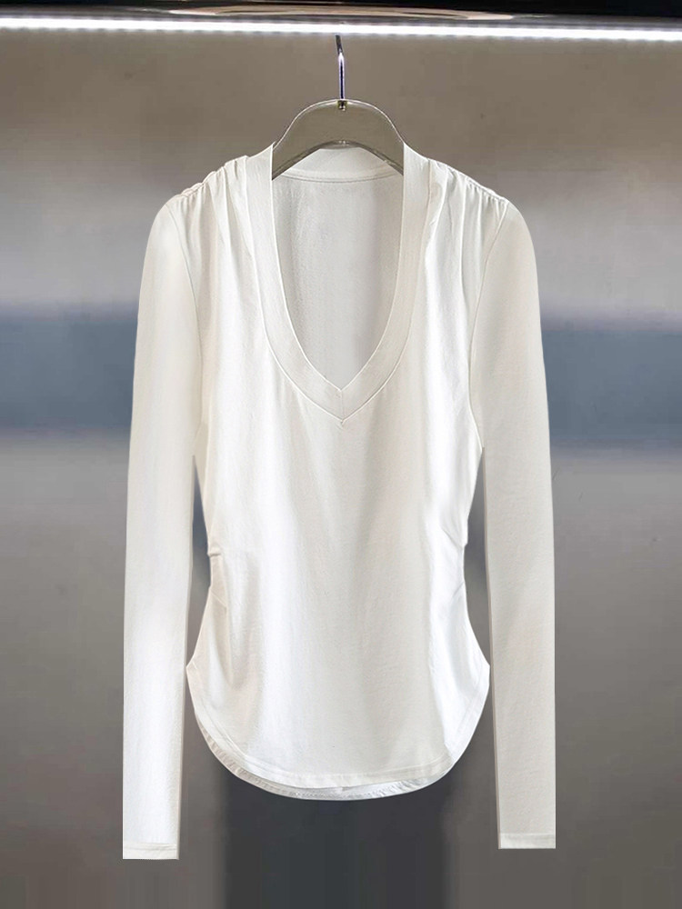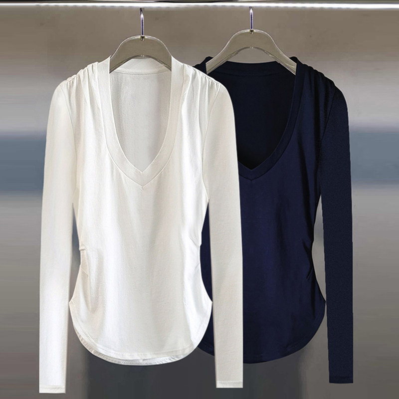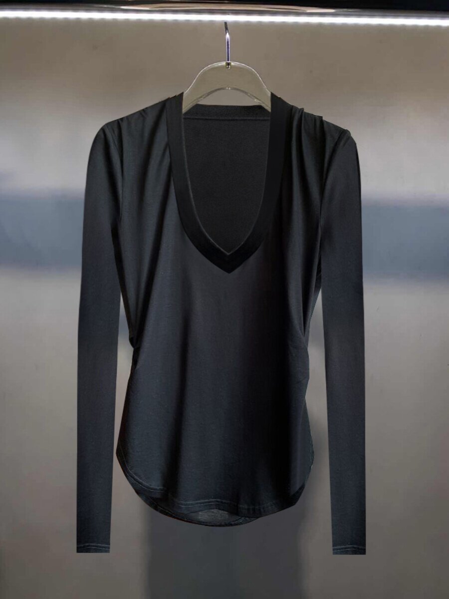 Корсет, осенняя футболка, дизайнерский приятный телу лонгслив, облегающий крой, V-образный вырез, 2023, тренд сезона