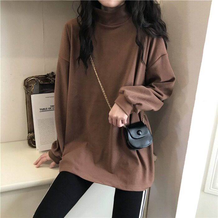 Бархатный базовый приятный телу демисезонный утепленный лонгслив, высокий воротник, свободный крой, в западном стиле